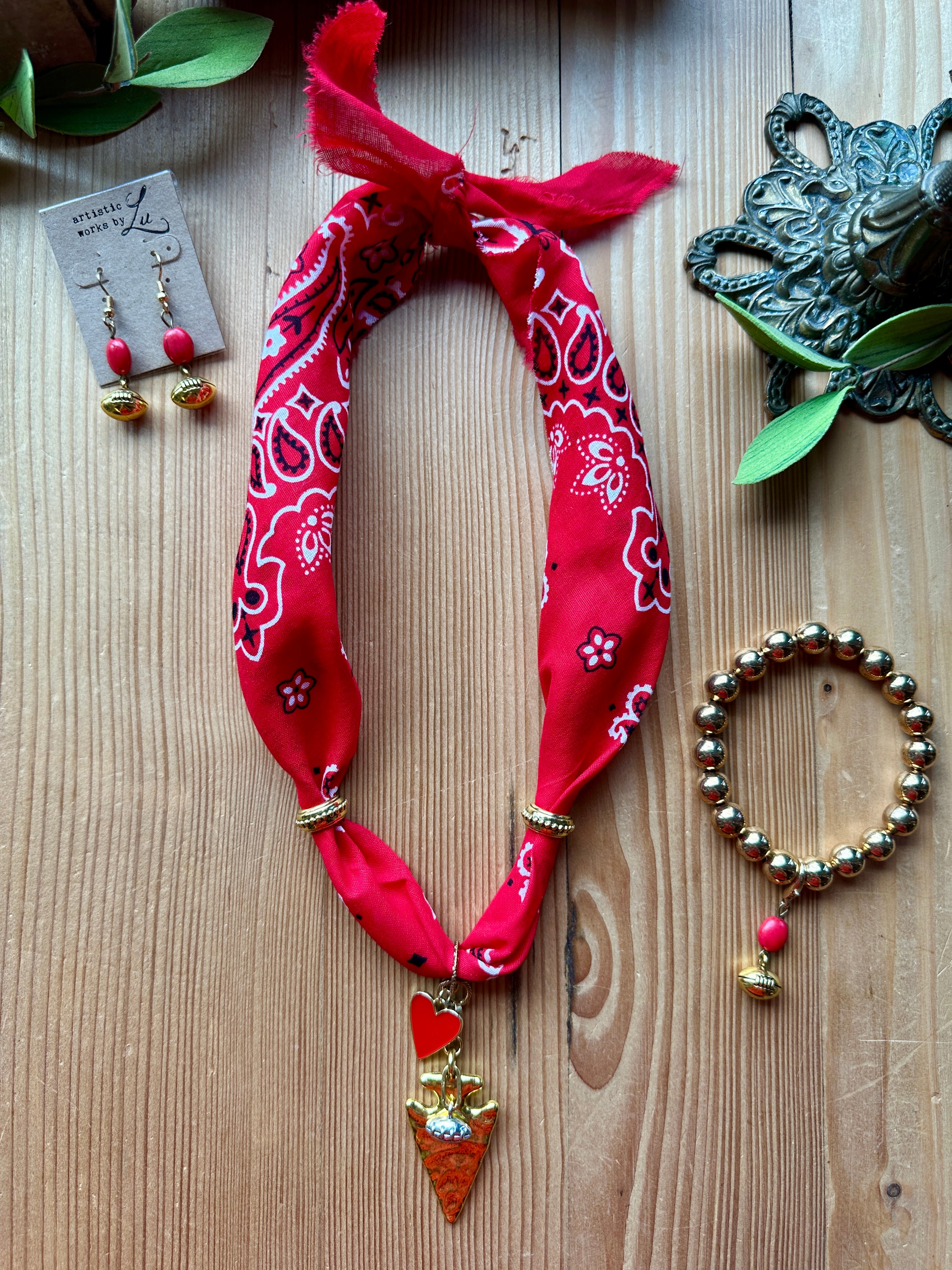 Bandana Necklace with Arrowhead Pendant
