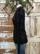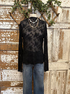 Bring a little drama and elegance into your wardrobe with this stunning black sheer lace top. Perfect for layering, this boutique clothing piece is designed to transition effortlessly from day to night. Style it with jeans for a chic casual look, or elevate it with one of our handmade necklaces from Artistic Works by Lu. Whether you’re browsing boutiques near me in Leavenworth, KS or Springfield, MO—or shopping through our online clothing boutique—this artistic clothing piece is a timeless addition.