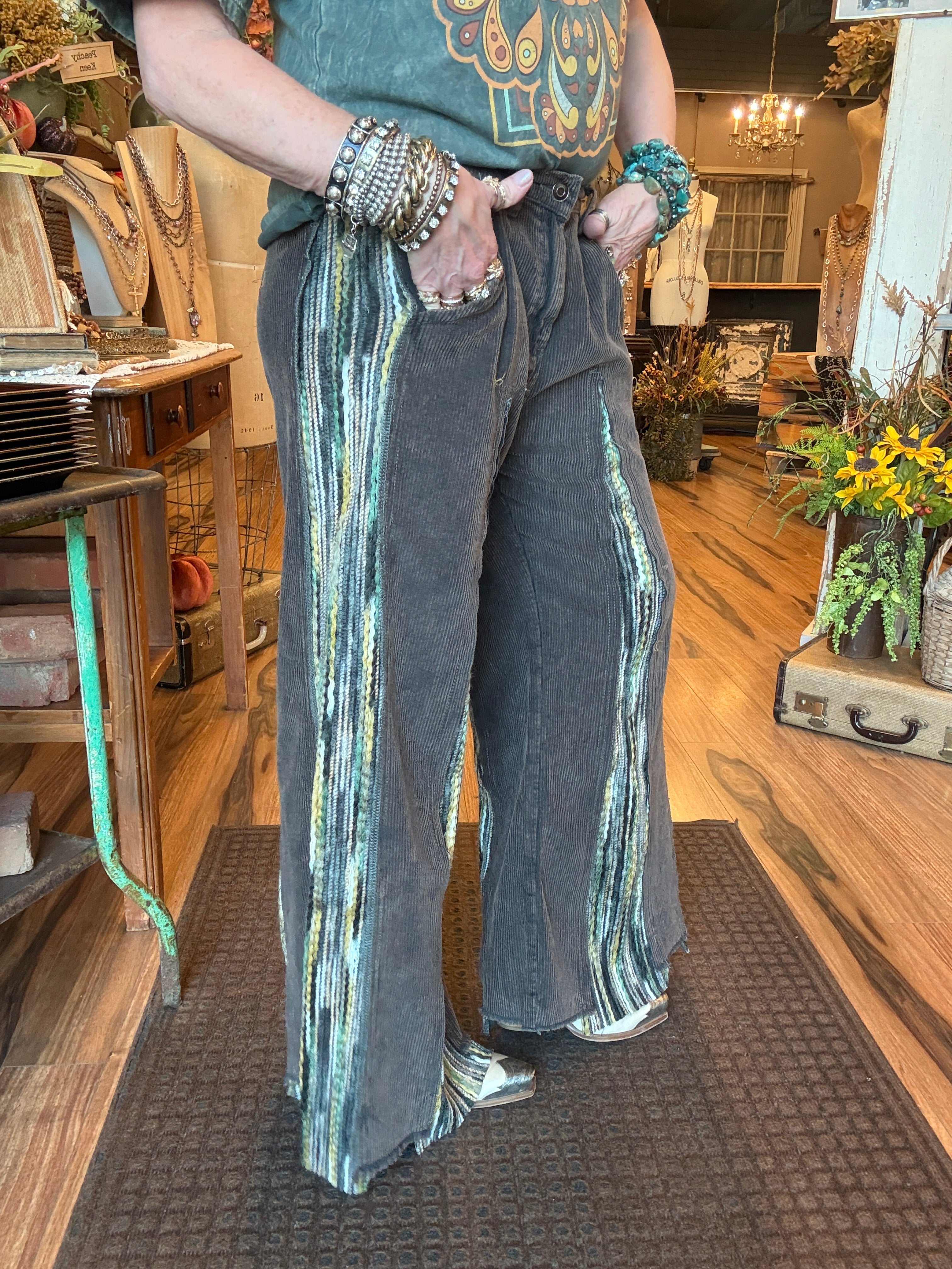 Channel effortless, artistic style in our Boho Stripe Corduroy Flare Pants. These wide-leg pants are a true boutique favorite — featuring soft washed corduroy, bold striped insets, and a flattering high-rise fit that blends comfort with creativity. The unique mixed-fabric detailing adds a touch of handmade artistry, making each pair feel one-of-a-kind. Whether you’re shopping in Studio or browsing online, these pants capture that perfect boutique clothing vibe. Pair them with handmade jewelry and a vintage-inspired graphic tee for a look that’s pure Artistic Works by Lu.