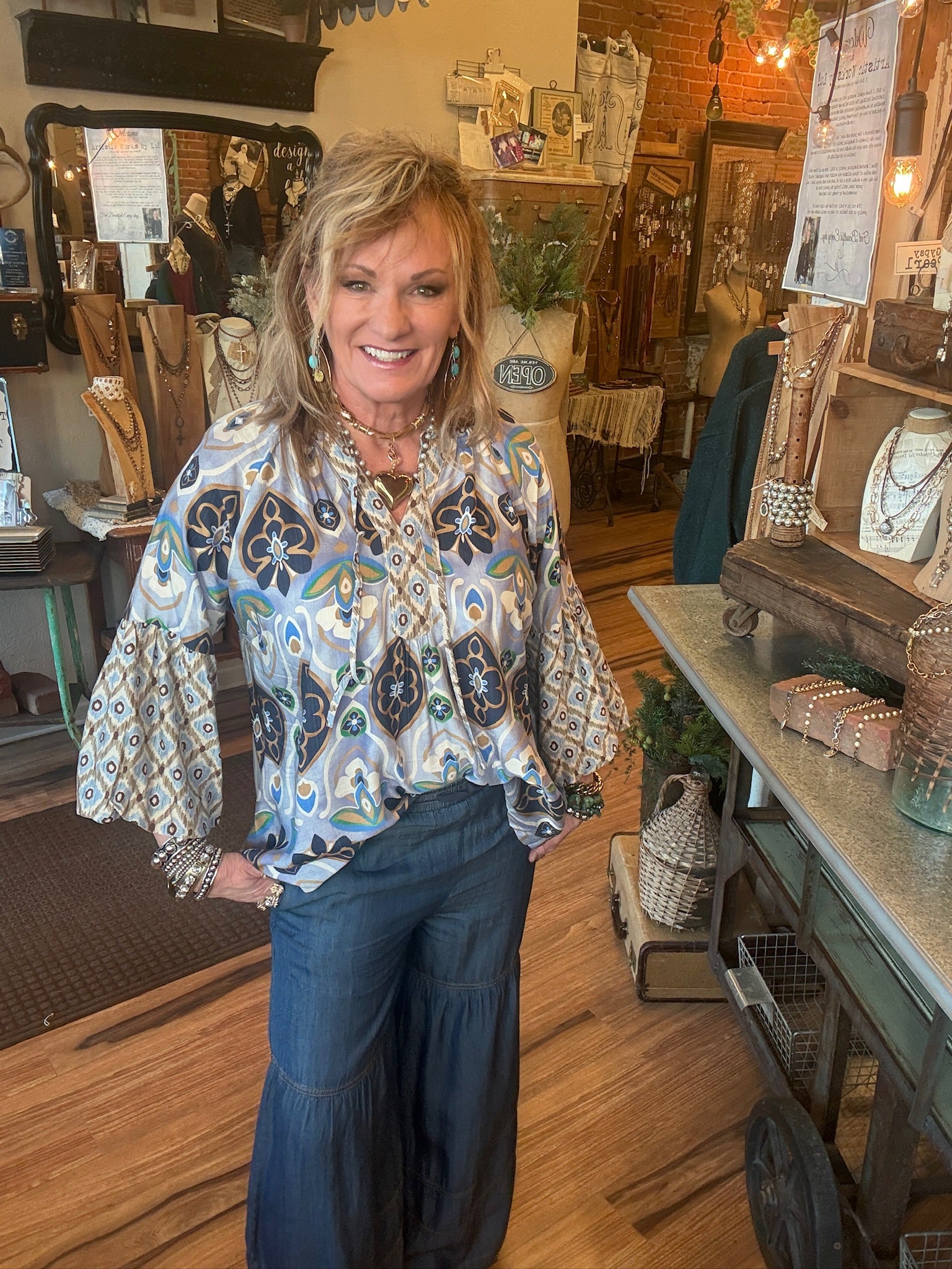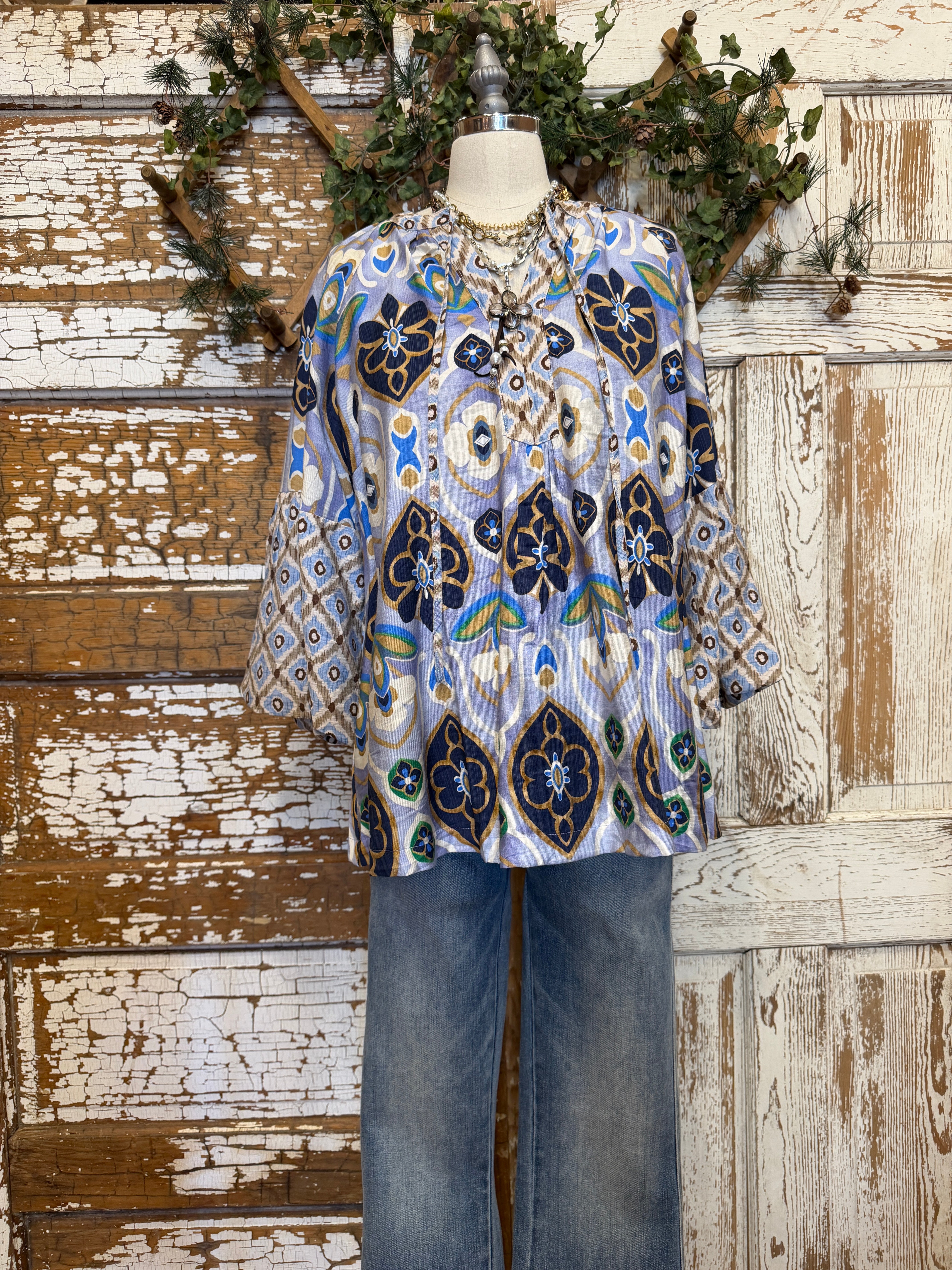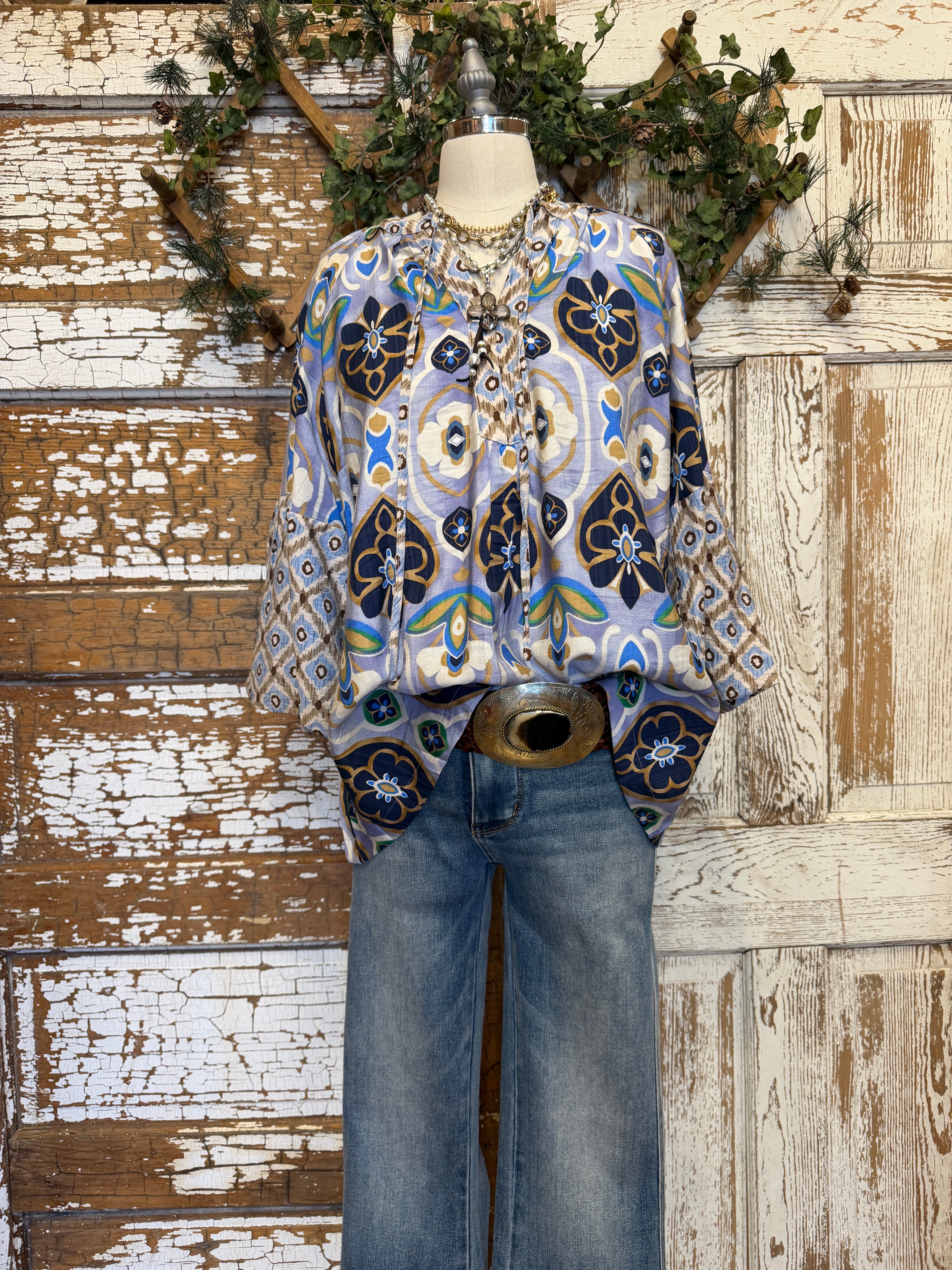 Boho Blue Medallion Printed Top