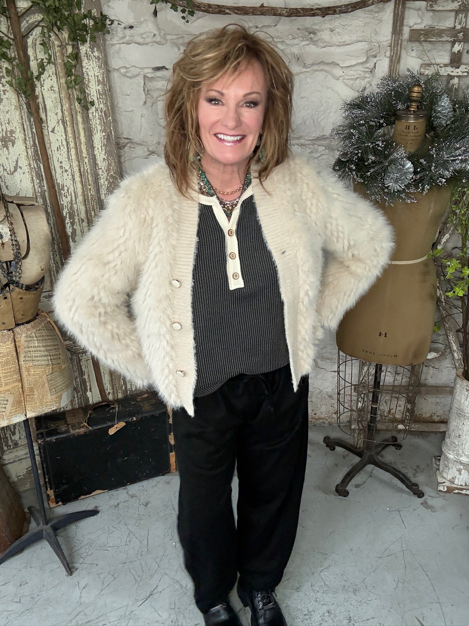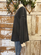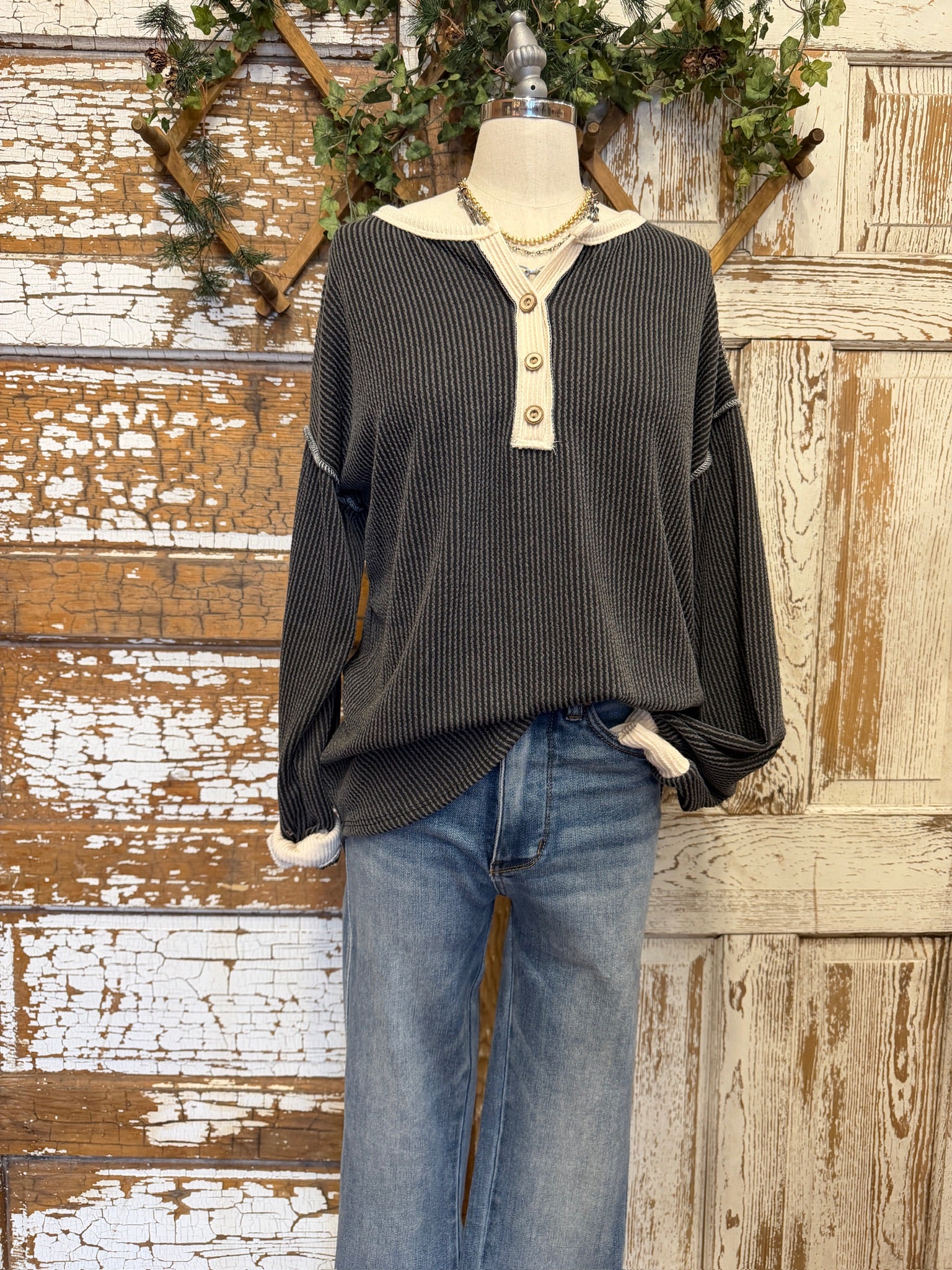 Charcoal Ribbed 3/4 Faux Button Popover Top: Small - XL