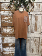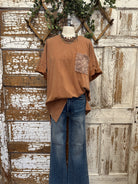 Effortless, earthy, and beautifully detailed — our Clay Crochet Pocket Tee blends casual comfort with boutique charm. Crafted from soft, mineral-washed cotton in a warm clay hue, this relaxed-fit tee stands out with its handmade-inspired crochet pocket for a touch of boho artistry. The dropped shoulder sleeves and raw hemline add to its laid-back, vintage feel, making it a perfect match for your favorite denim or boho skirts.