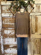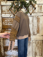 Cozy up in earthy tones with this cocoa thermal top—crafted for those who love subtle details with a touch of artistry. The patterned knit sleeves add warmth and texture, making it an effortlessly stylish go-to for fall days and beyond.