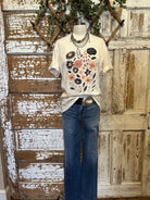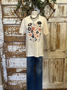 Show off your creative side with this soft cream tee featuring peach and black floral artwork. Casual yet feminine, it’s an easy boutique favorite that pairs beautifully with denim or layers under a shacket.