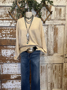 Embrace effortless style and unparalleled comfort with our Women's Cozy Chic Cream V-Neck Knit Sweater. Crafted from an ultra-soft, breathable fabric, this sweater features a flattering V-neckline and a relaxed, slightly oversized fit that drapes beautifully. It's the perfect blend of casual comfort and sophisticated charm, making it a versatile staple for any wardrobe. Whether you're lounging at home or stepping out in style, this sweater promises warmth and a luxurious feel against your skin.