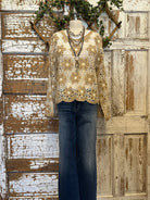 Make a statement with this flower crochet lace top, an artistic blend of texture and design. Styled with Judy Blue 90's Straight leg jeans and our signature handmade artisan jewelry, this boutique look transitions effortlessly from brunch to evening outings.