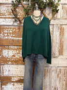 Discover ultimate comfort and timeless style with our Effortless Chic Emerald Green V-Neck Relaxed Fit Pullover Sweater. Crafted from a soft, breathable knit fabric, this versatile piece is designed to provide a relaxed yet flattering silhouette. Its classic V-neckline adds a touch of elegance, making it a perfect staple for any modern wardrobe. Enjoy unparalleled comfort whether you're relaxing at home or stepping out.