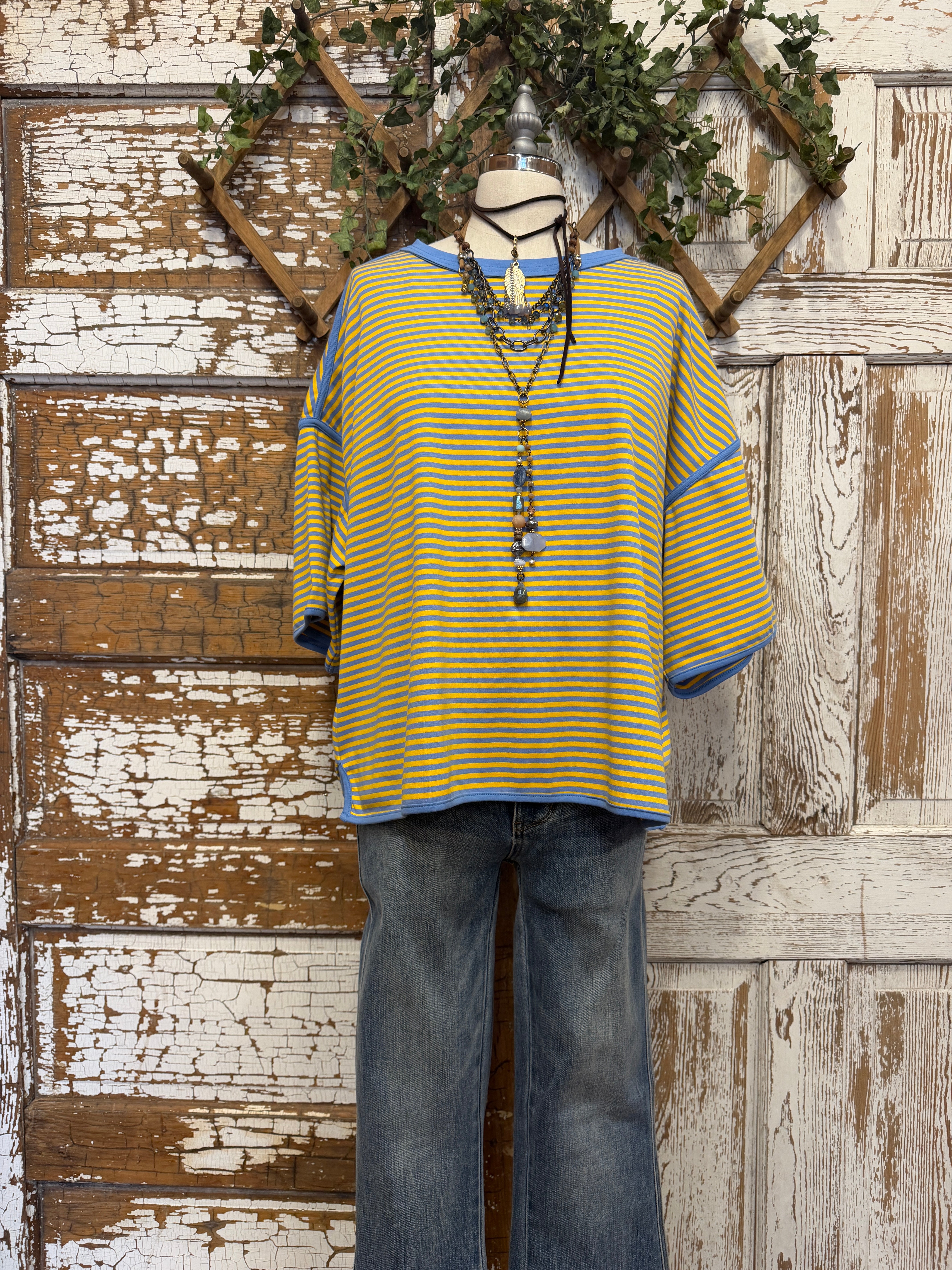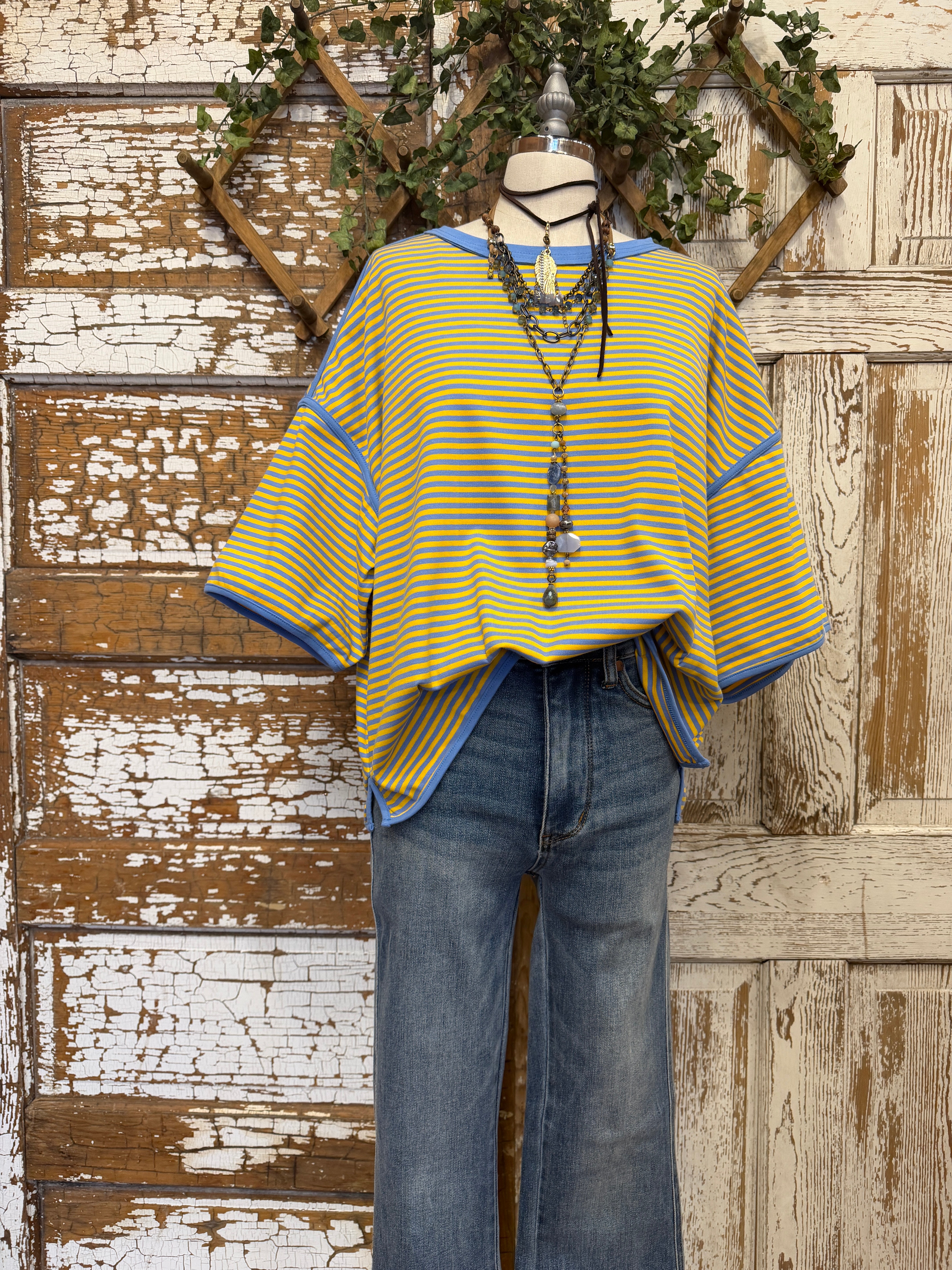 The bold stripes and a relaxed silhouette give this top an easygoing, playful vibe perfect for casual days to throw on a go!