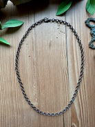 Add a sleek, versatile touch to your jewelry collection with this classic gunmetal silver chain necklace. Designed with a simple round link chain and finished in a modern gunmetal tone, this piece is perfect for wearing alone for a minimalist look or layering with your favorite pendants and statement necklaces. Its timeless design makes it an easy accessory for both casual and dressy outfits.