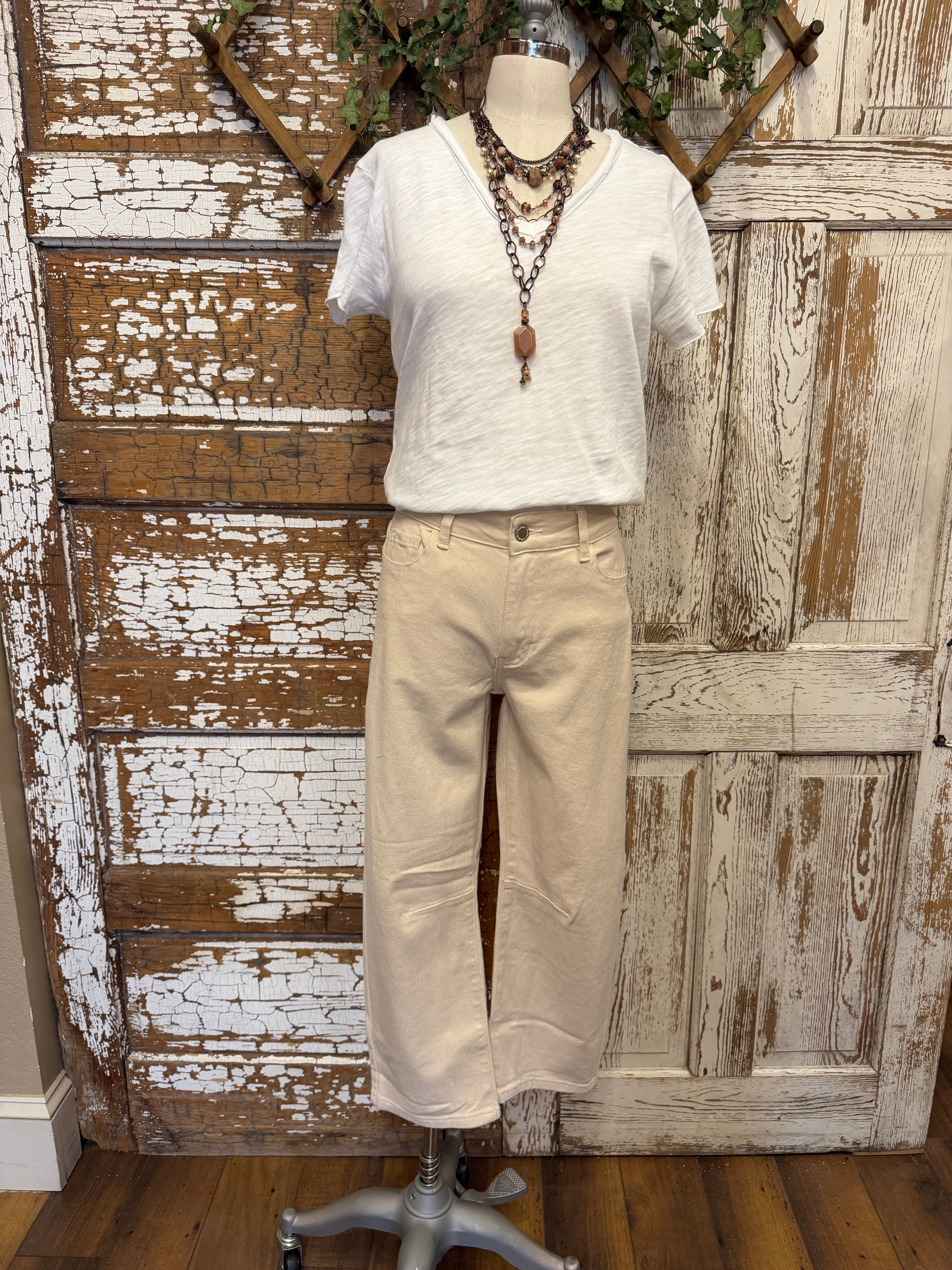 A versatile neutral pant with a clean, structured look that pairs effortlessly with everything from tees to dressier tops. A closet staple you’ll reach for year-round.