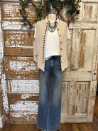 Elevate your layering with this soft velvet jacket featuring bold leopard lining and cuff detail. A luxe, cozy statement piece that pairs effortlessly with denim and basic tees.