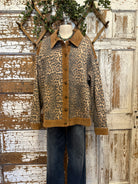 Step out in fierce style with our stunning Leopard Print & Corduroy Contrast Jacket. This eye-catching piece perfectly blends the untamed allure of leopard print with the classic, cozy texture of corduroy. Designed for the fashion-forward individual, it's an instant wardrobe upgrade that promises to turn heads and elevate your everyday ensembles. Crafted for comfort and versatility, this jacket features a relaxed fit that’s ideal for layering over your favorite tees or sweaters. The rich tan corduroy collar, cuffs, and hem provide a stylish contrast to the bold leopard pattern, creating a sophisticated yet playful look. Its durable construction ensures it will be a go-to piece for seasons to come. Whether you're heading out for a casual brunch, a weekend adventure, or simply adding a statement to your daily errands, this jacket is your perfect companion. Pair it with denim for an effortless cool vibe or dress it up with darker tones for a more polished aesthetic. Embrace your unique style with this must-have addition.