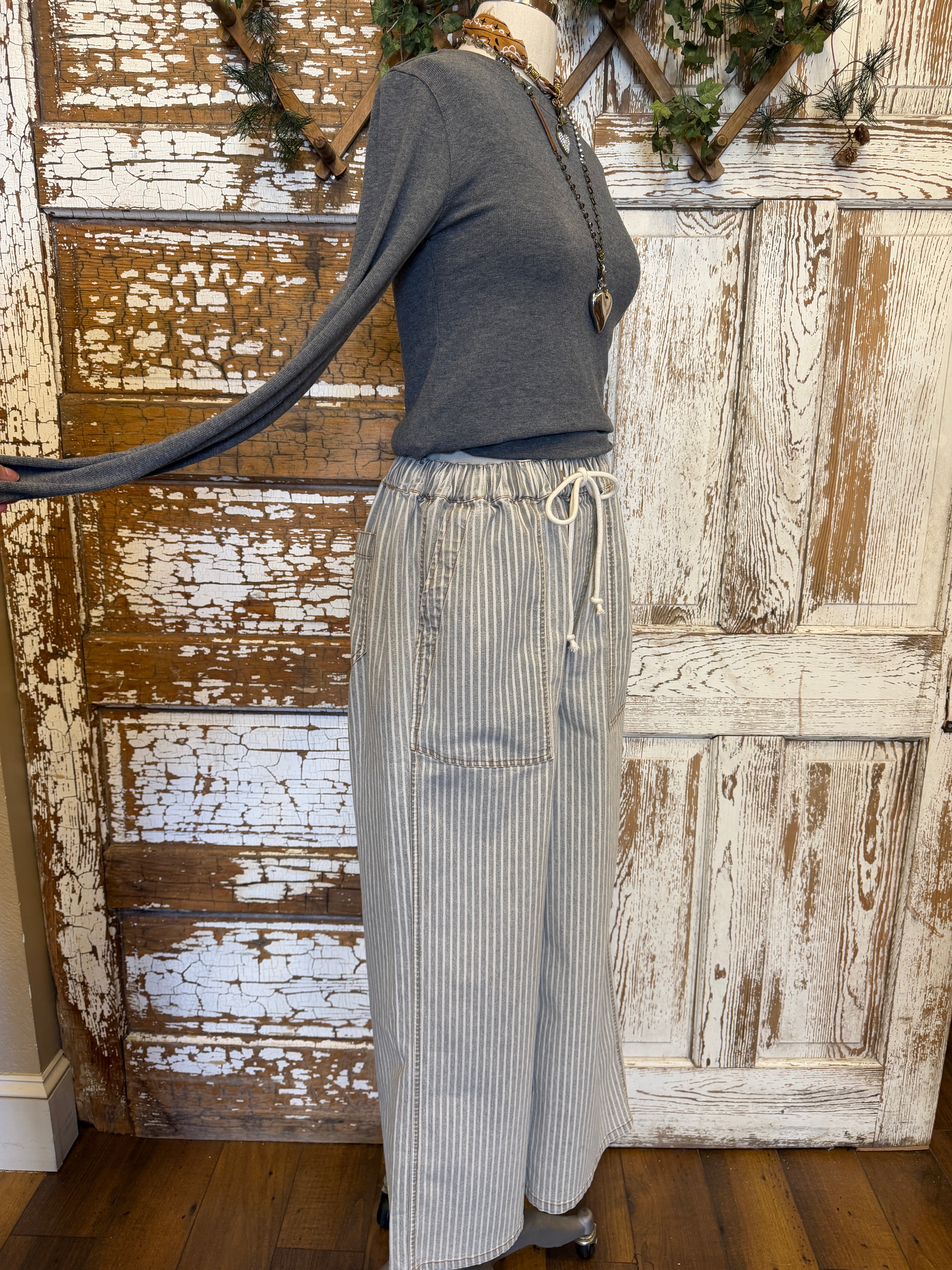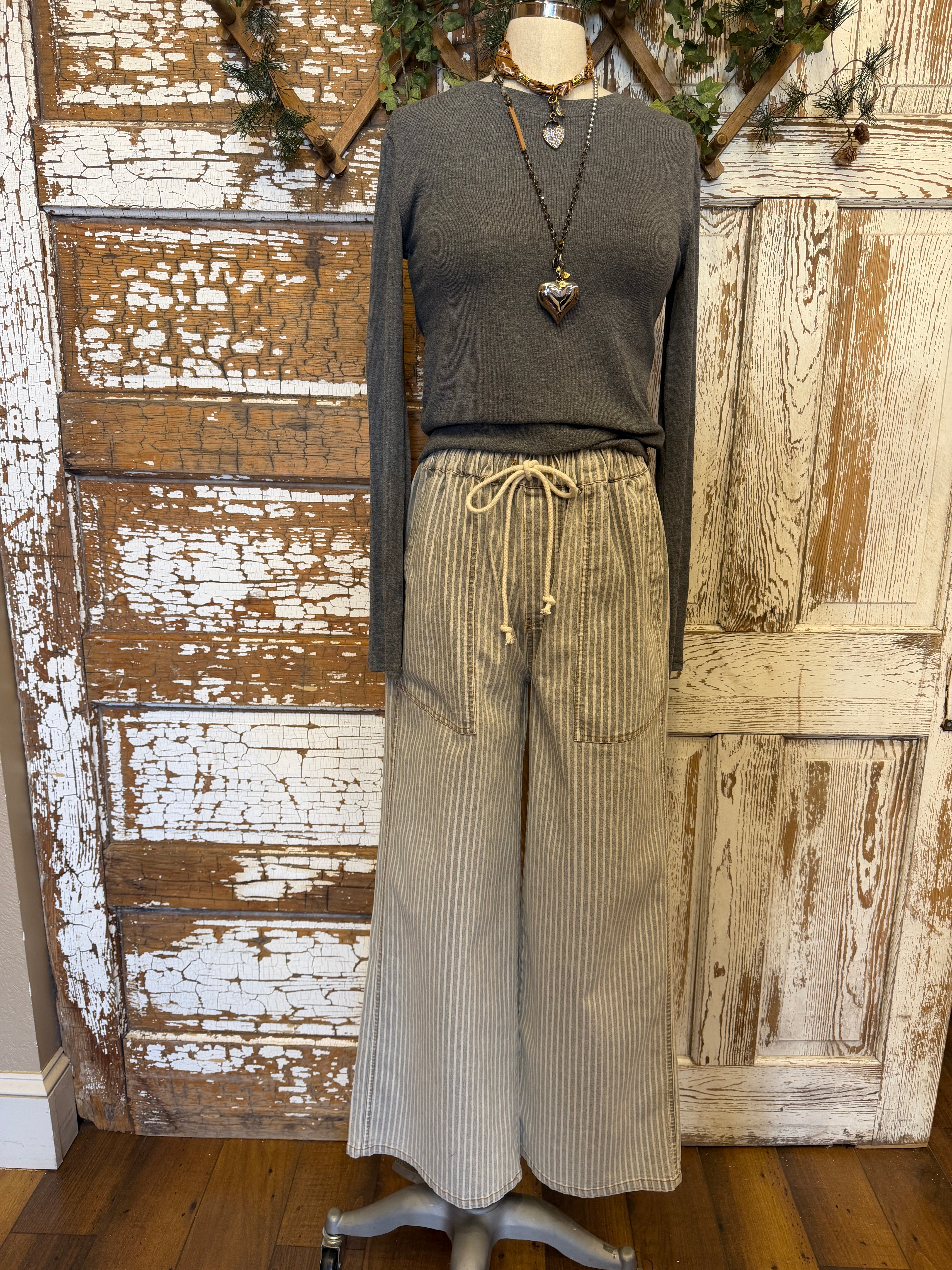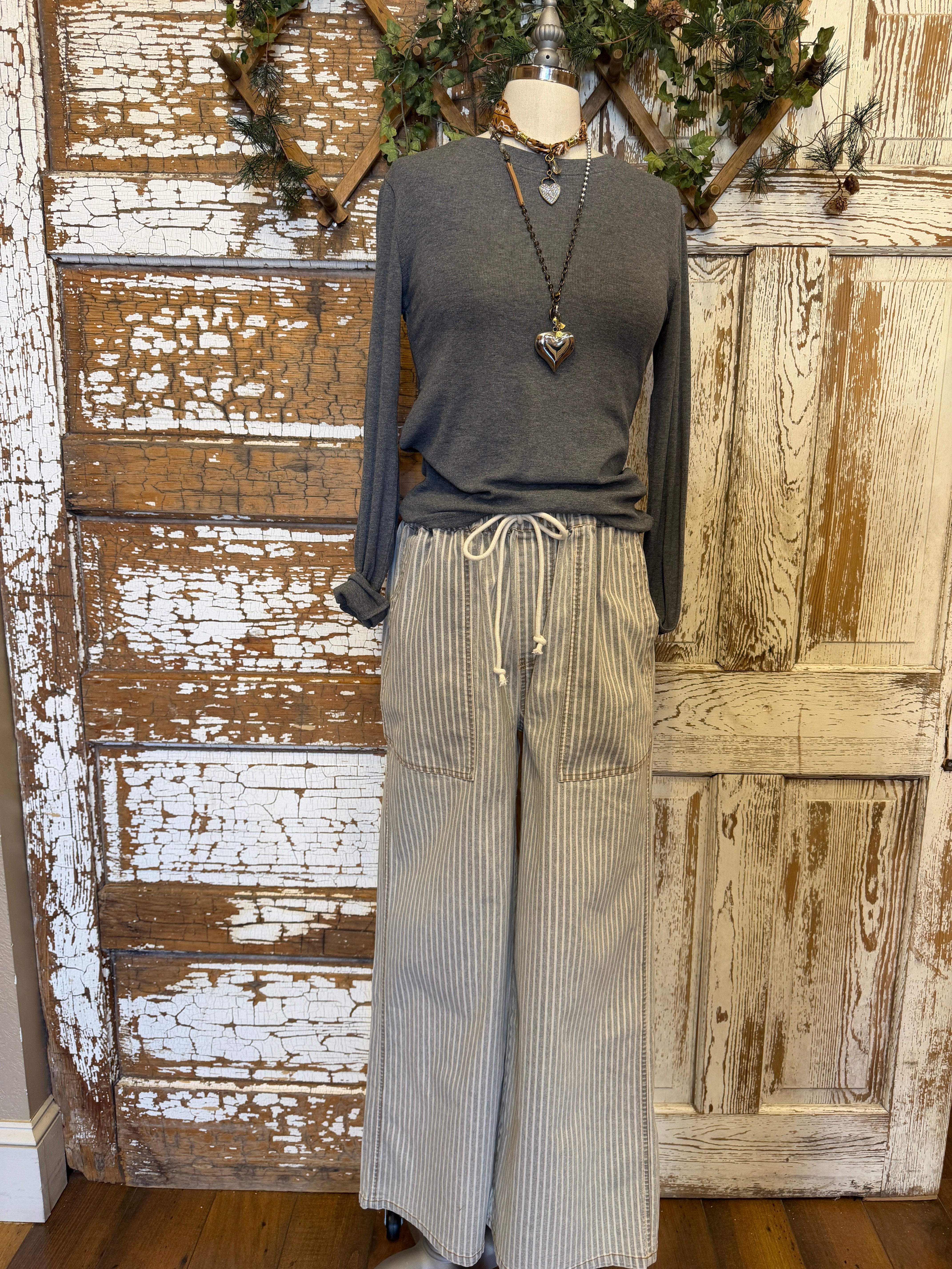 These relaxed striped wide leg pants blend comfort and effortless boutique style with an easy, flowy fit. Designed with a soft fabric, elastic waistband, and adjustable drawstring, they’re perfect for casual days, travel, or elevated Lu leisure looks.