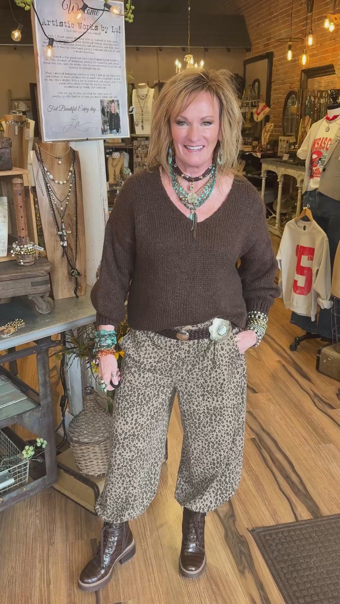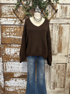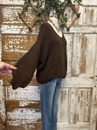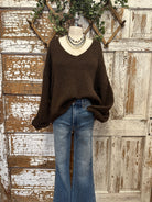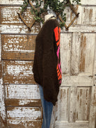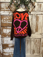 Fall in love with cozy style in our Love Is in the Air Chocolate Knit Sweater! This soft, chunky knit features a relaxed V-neck silhouette in a deep chocolate brown that’s both warm and flattering. The back steals the show with bold pink and coral artwork — a heart and peace sign surrounded by the word “LOVE” and the phrase Love Is in the Air