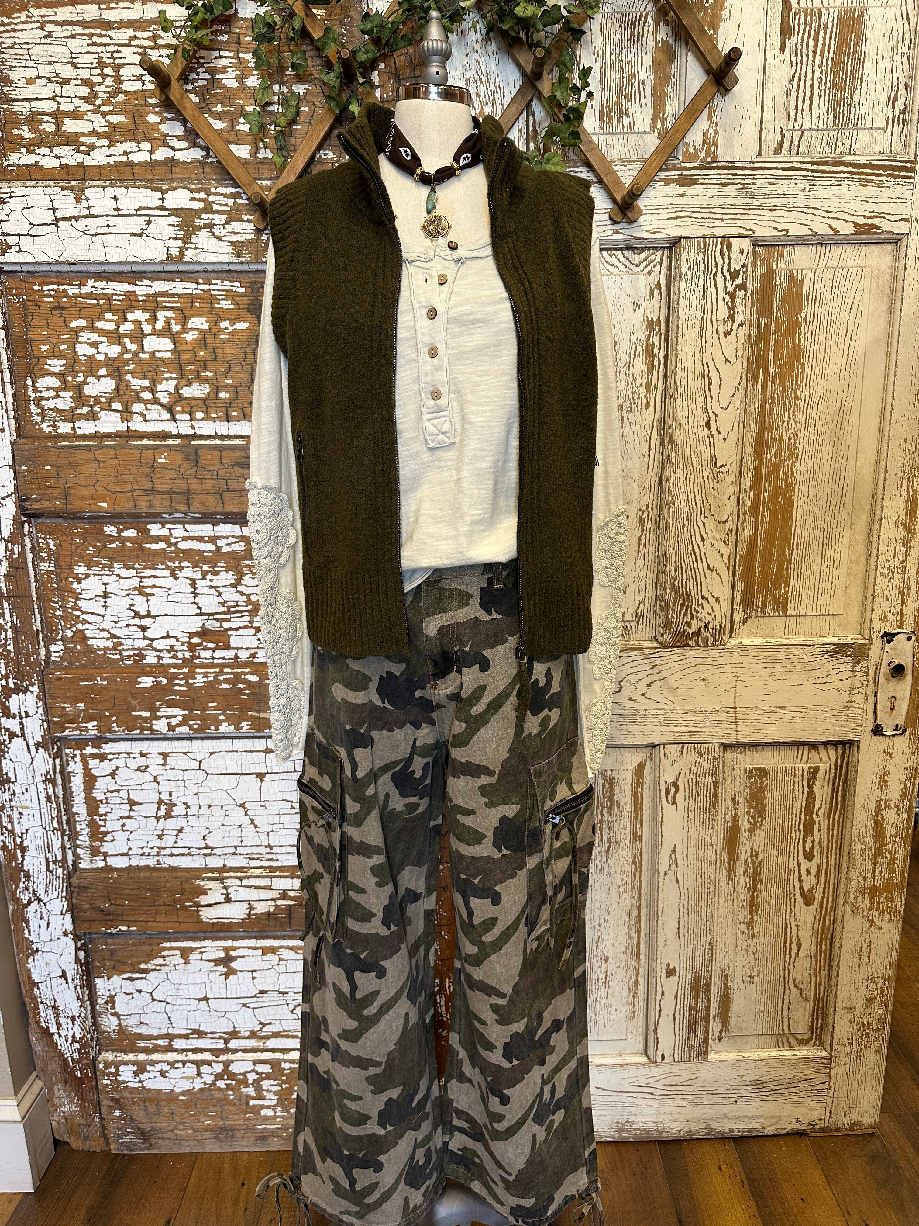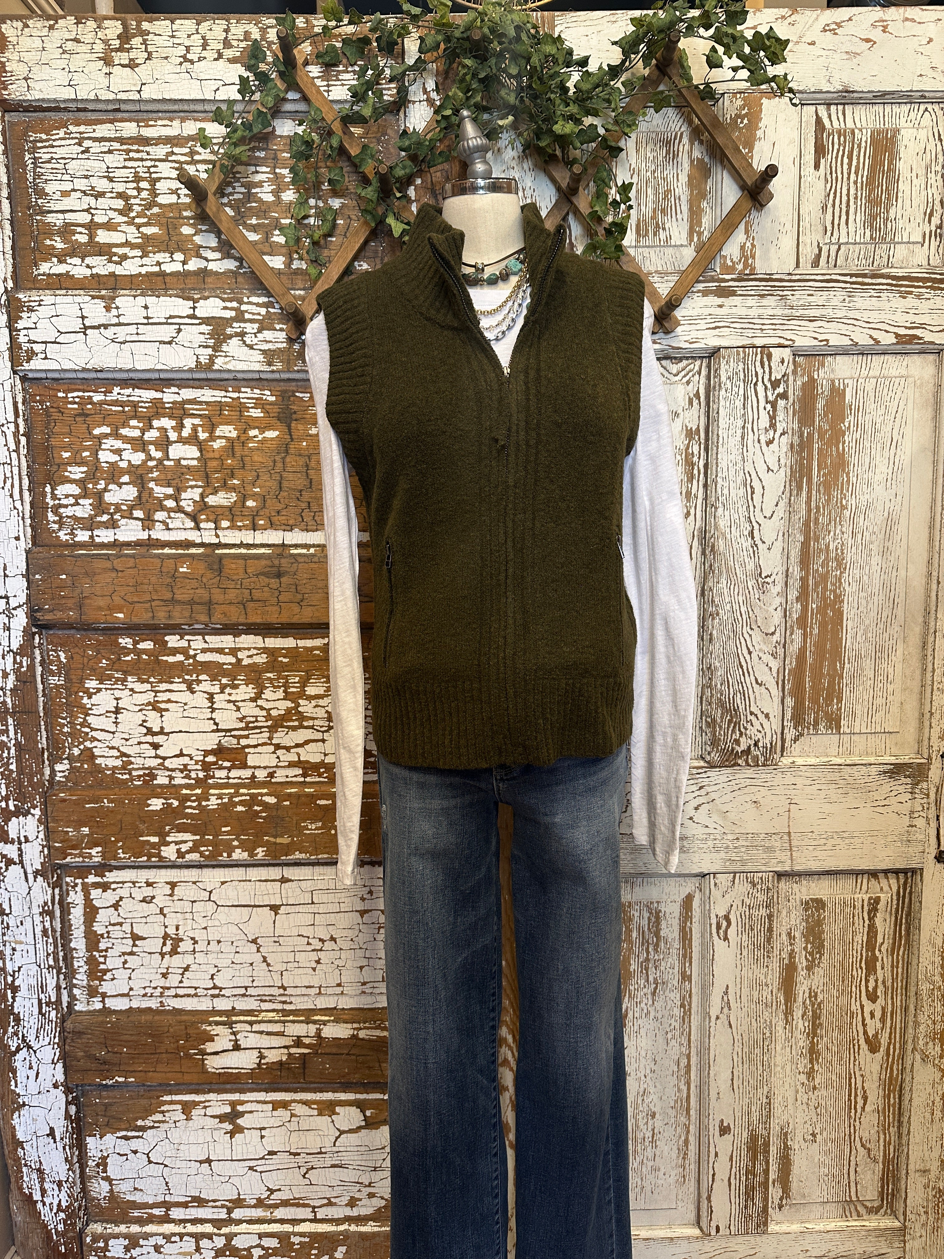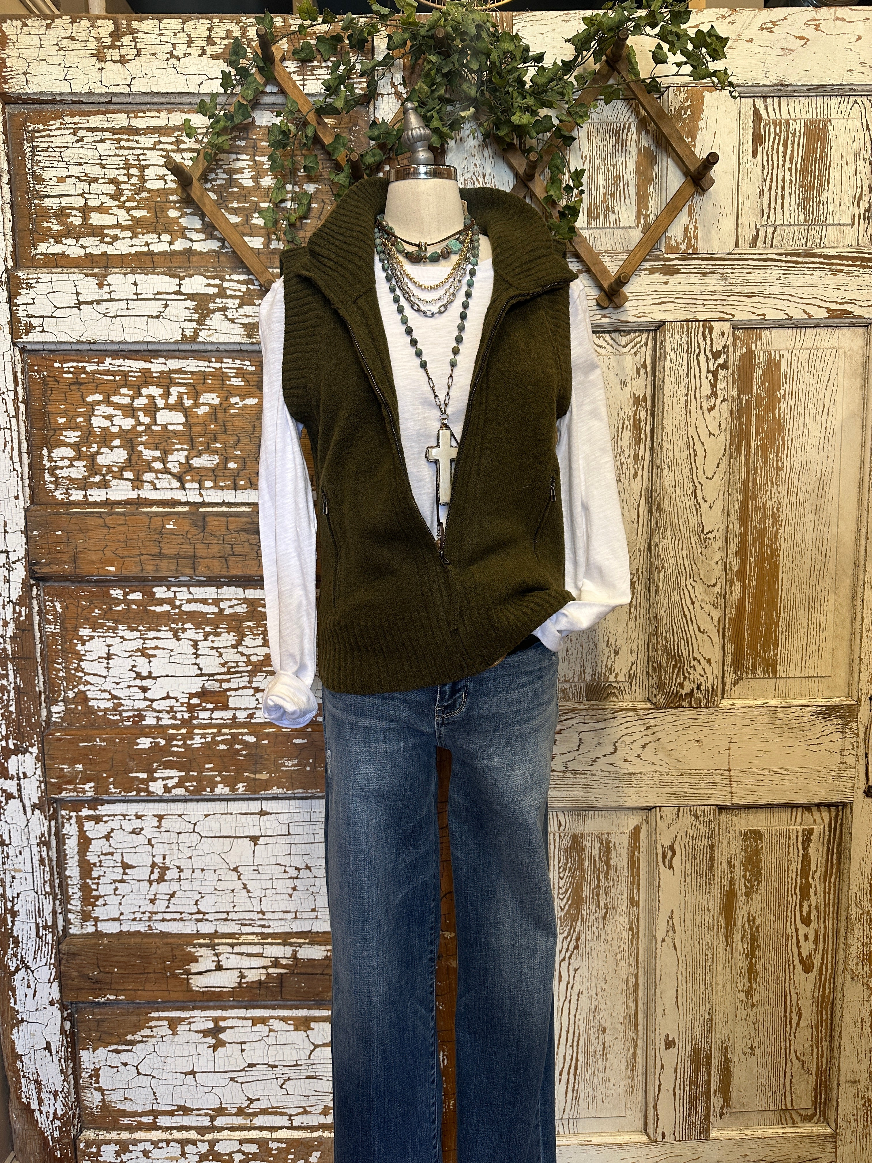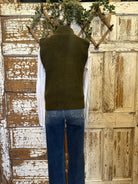 Pair it with a long-sleeve tee and jeans for a classic, laid-back vibe, or layer it over a delicate blouse for a smart-casual ensemble. This olive green knit vest is a timeless addition that promises to elevate your everyday style with its comfortable fit and appealing texture. Embrace versatility and comfort with this must-have piece.