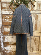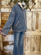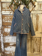 The Quilted Denim Jacket combines comfort and structure with an artistic twist. Featuring soft quilted denim, floral-trim detailing, and a relaxed fit, and snap front...it’s your go to outer layer for cozy boutique clothing style. Wear it over graphic tees or thermal tops for that layered Artistic Works by Lu look.