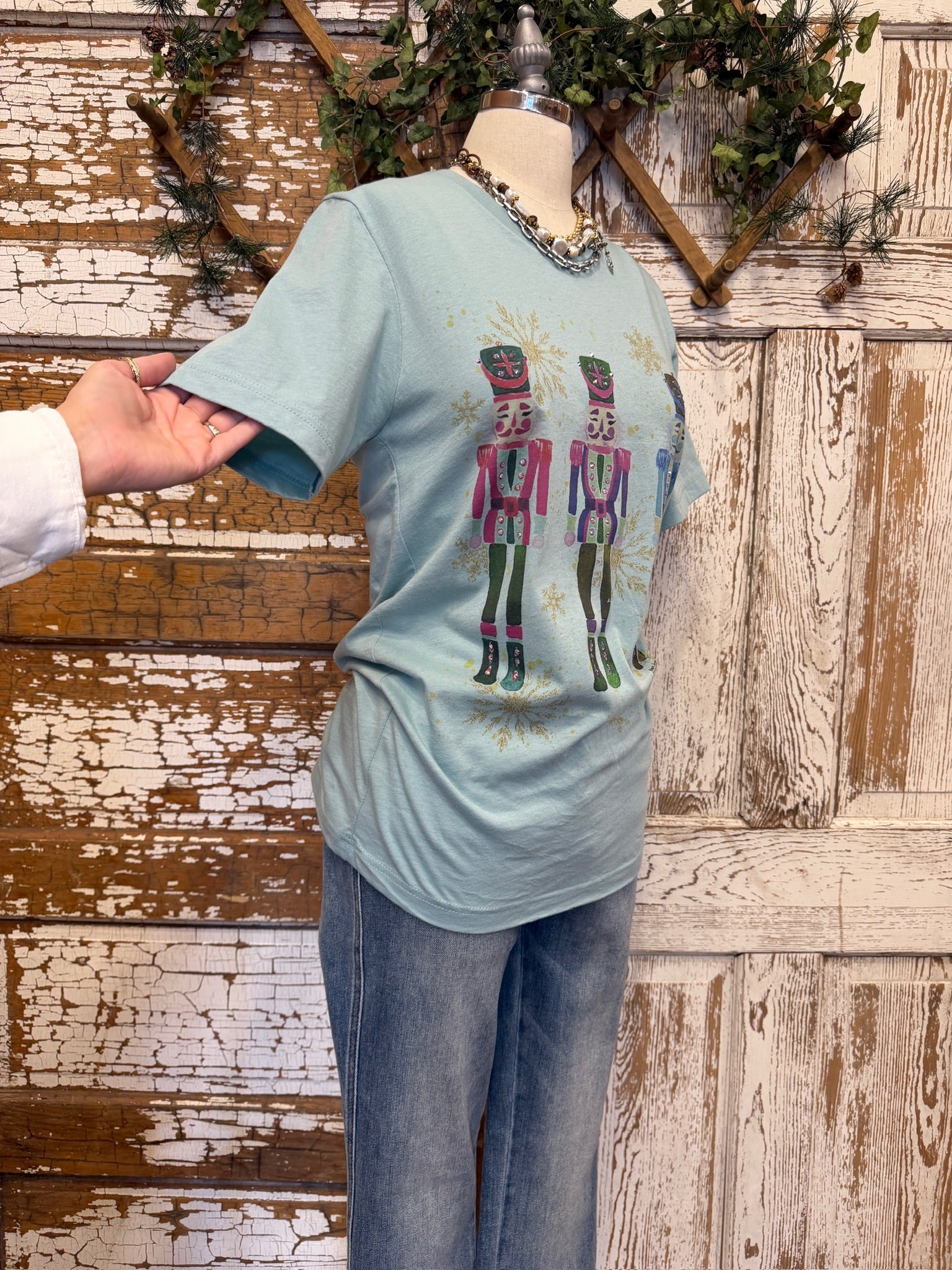 Bring playful holiday charm to your wardrobe with our Nutcracker Graphic Tee. Featuring vibrant seasonal colors on a soft, relaxed-fit tee, it pairs perfectly with denim and layered Lu jewelry. A festive favorite for cozy, casual style.