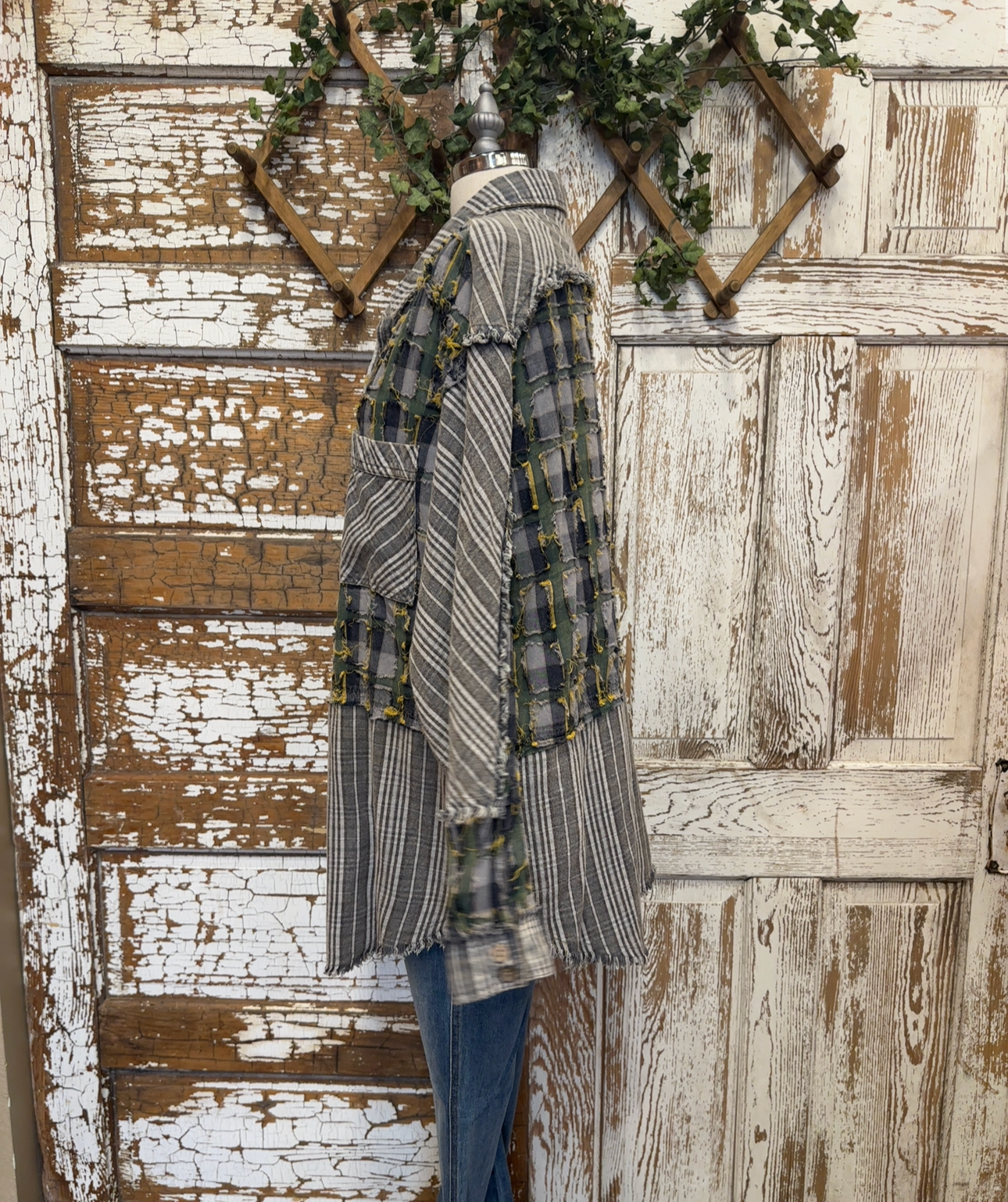 The Rustic Threads Plaid & Stripe Shacket is where cozy comfort meets artistic style. This one-of-a-kind piece blends mixed plaid and striped patterns in soft, washed cotton for that perfectly lived-in feel. Its oversized silhouette makes it ideal for layering over your favorite boutique clothing or pairing with handmade jewelry for a signature Artistic Works by Lu look. Whether you’re styling it open over a tee or buttoned as a top, the textured details and raw-edge hem bring that boutique charm you’ll only find in at Lu's!