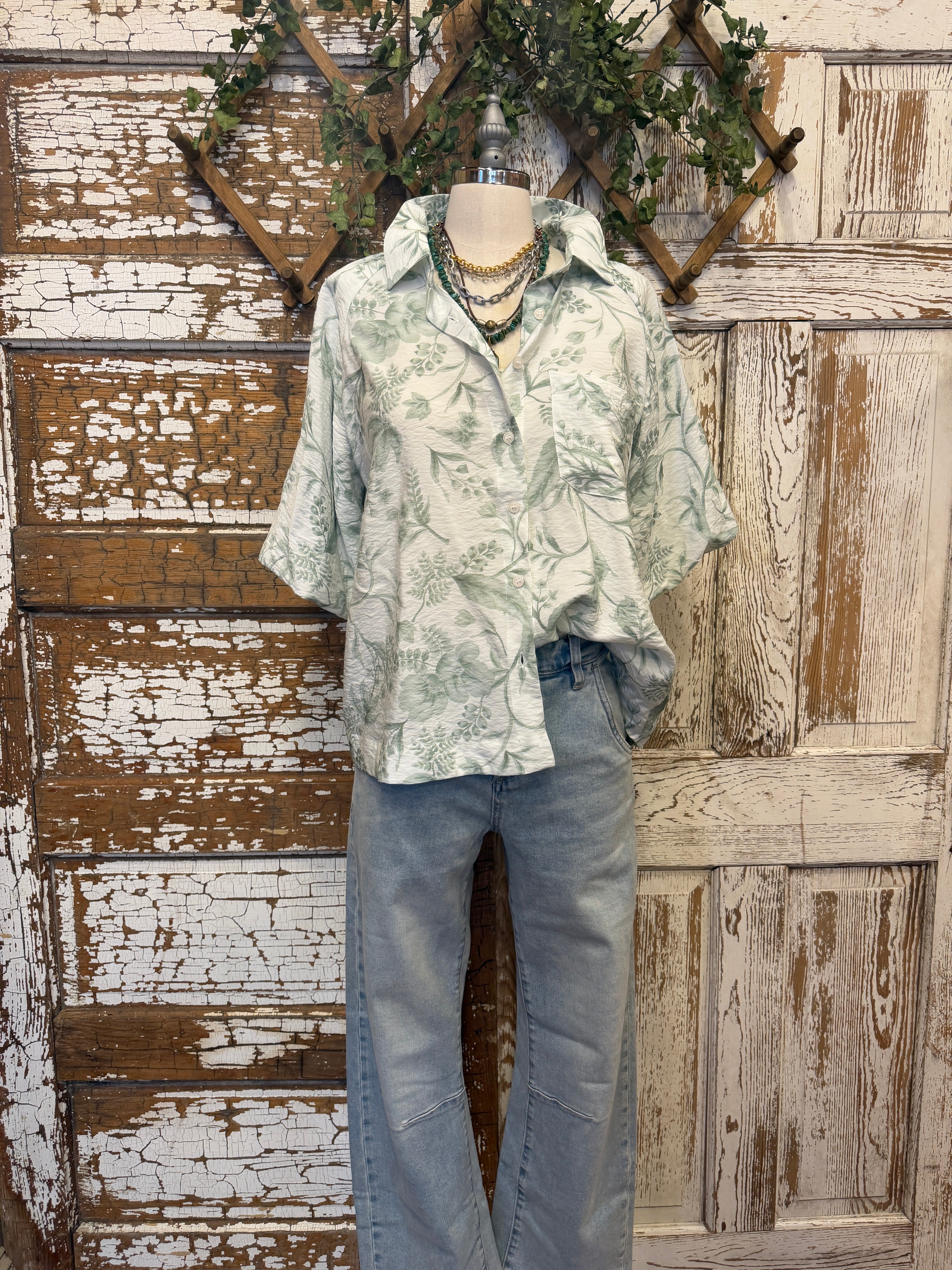 Sage Garden Button Front Blouse