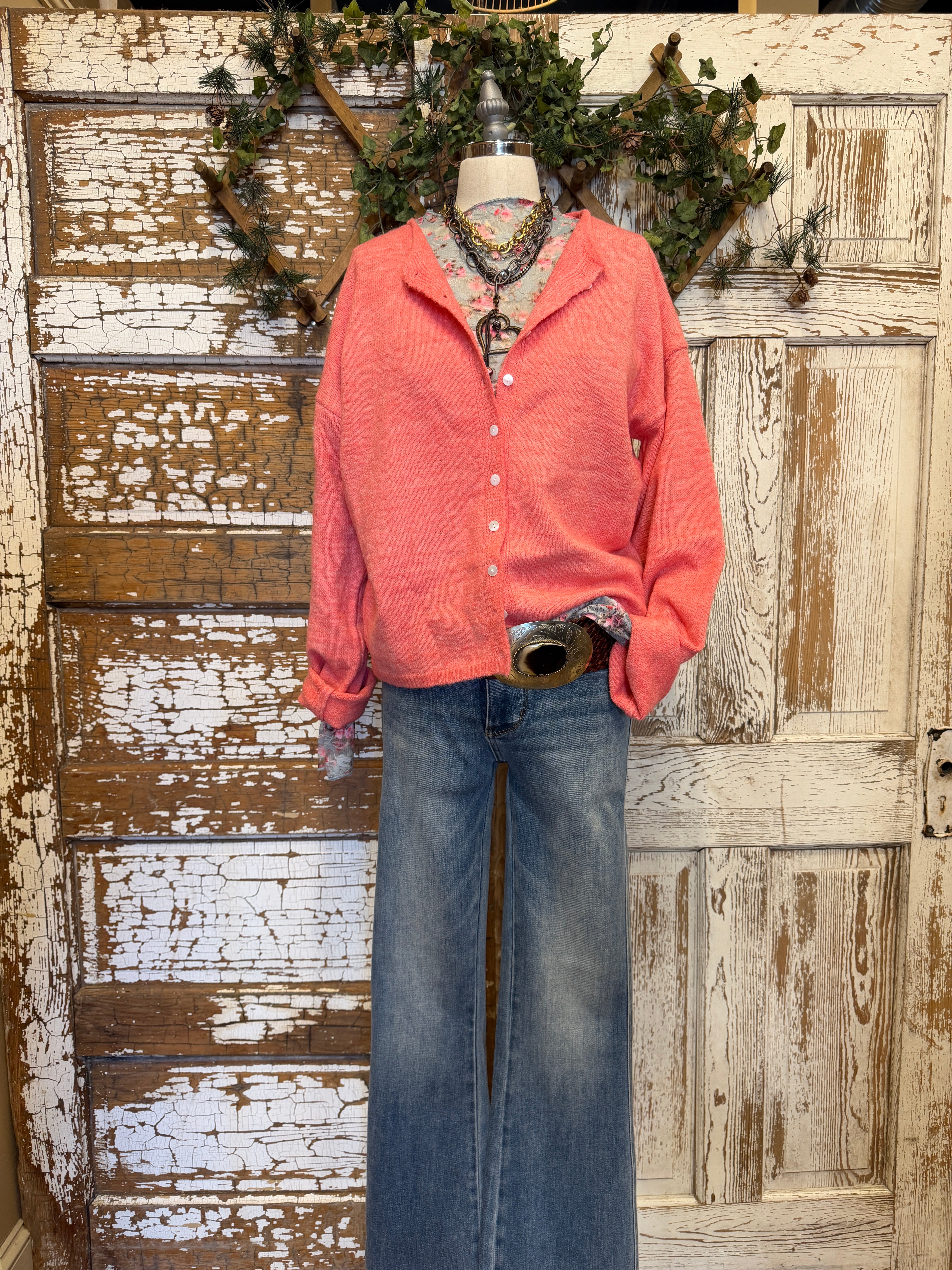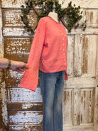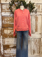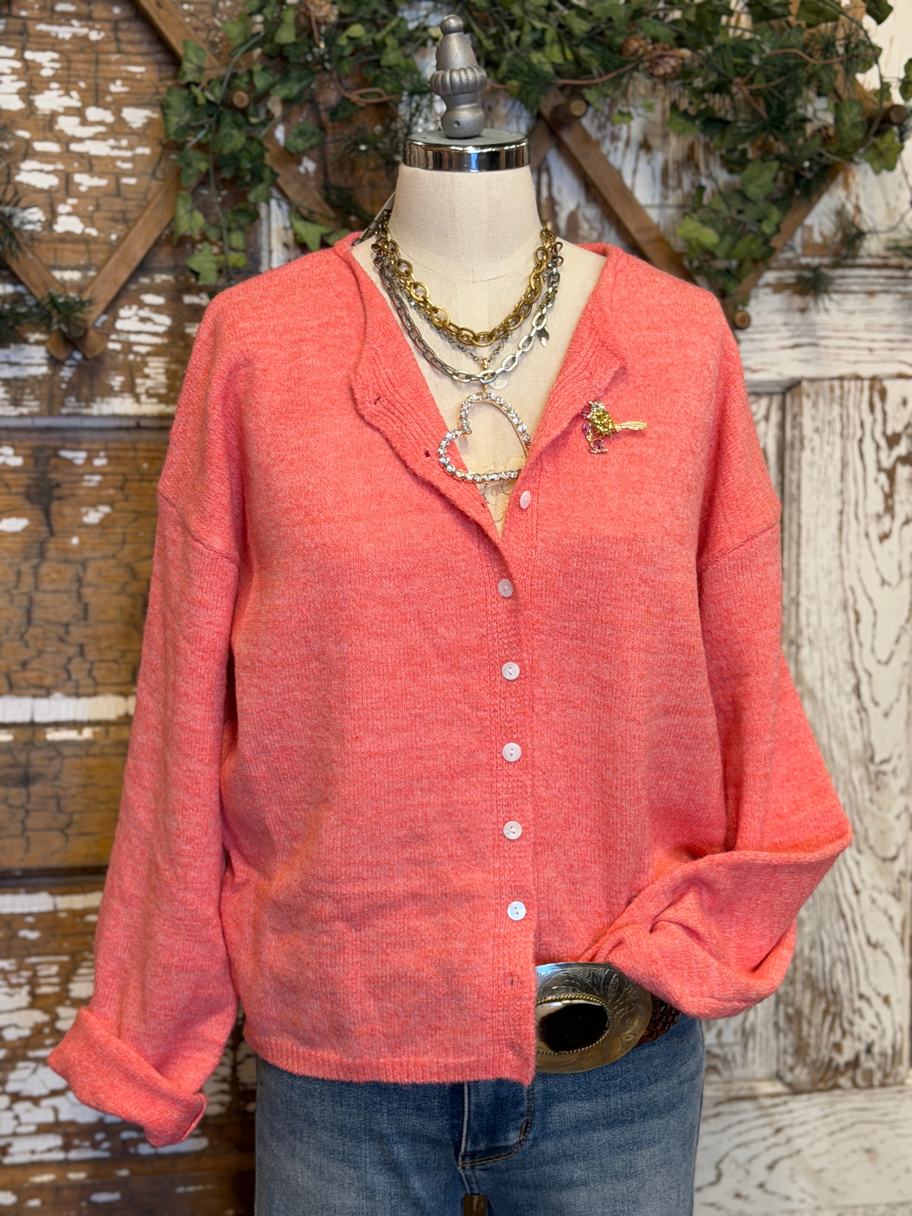 Add a pop of happy color to your everyday look with this lightweight soft coral cardigan. Designed with a relaxed fit and classic button-front styling, it’s an easy boutique staple you’ll reach for season after season.