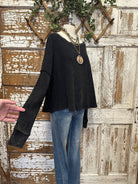 Simple, soft, and effortlessly chic — our Stone Washed Black Waffle Knit Boatneck Top is the perfect boutique basic you’ll reach for again and again. Made from a cozy textured waffle knit, this relaxed top features a wide boat neckline that can be worn on or off the shoulder for a touch of modern ease. Its longer hemline and dropped sleeves make it ideal for pairing with high-rise denim or layering under your favorite jackets.