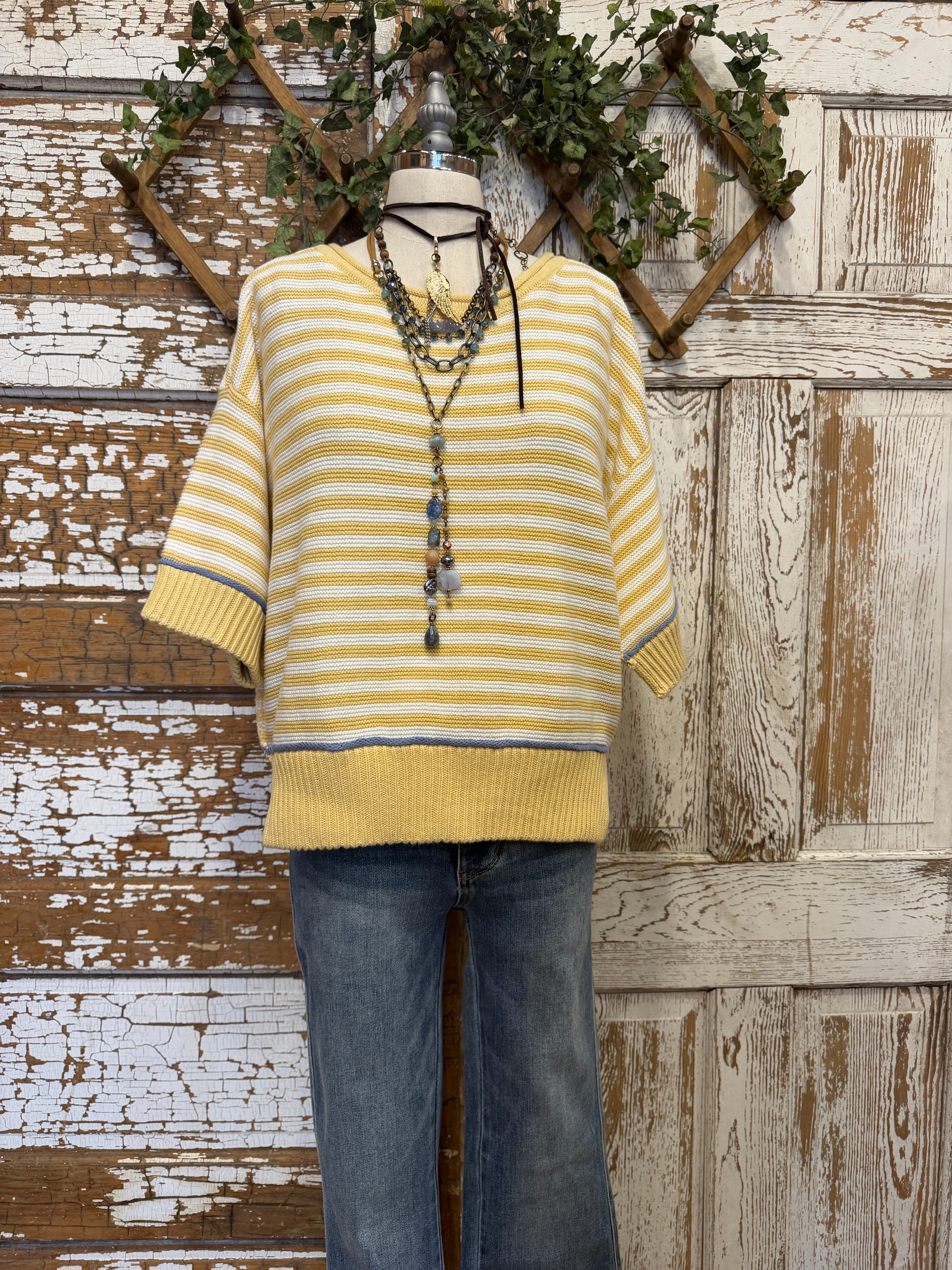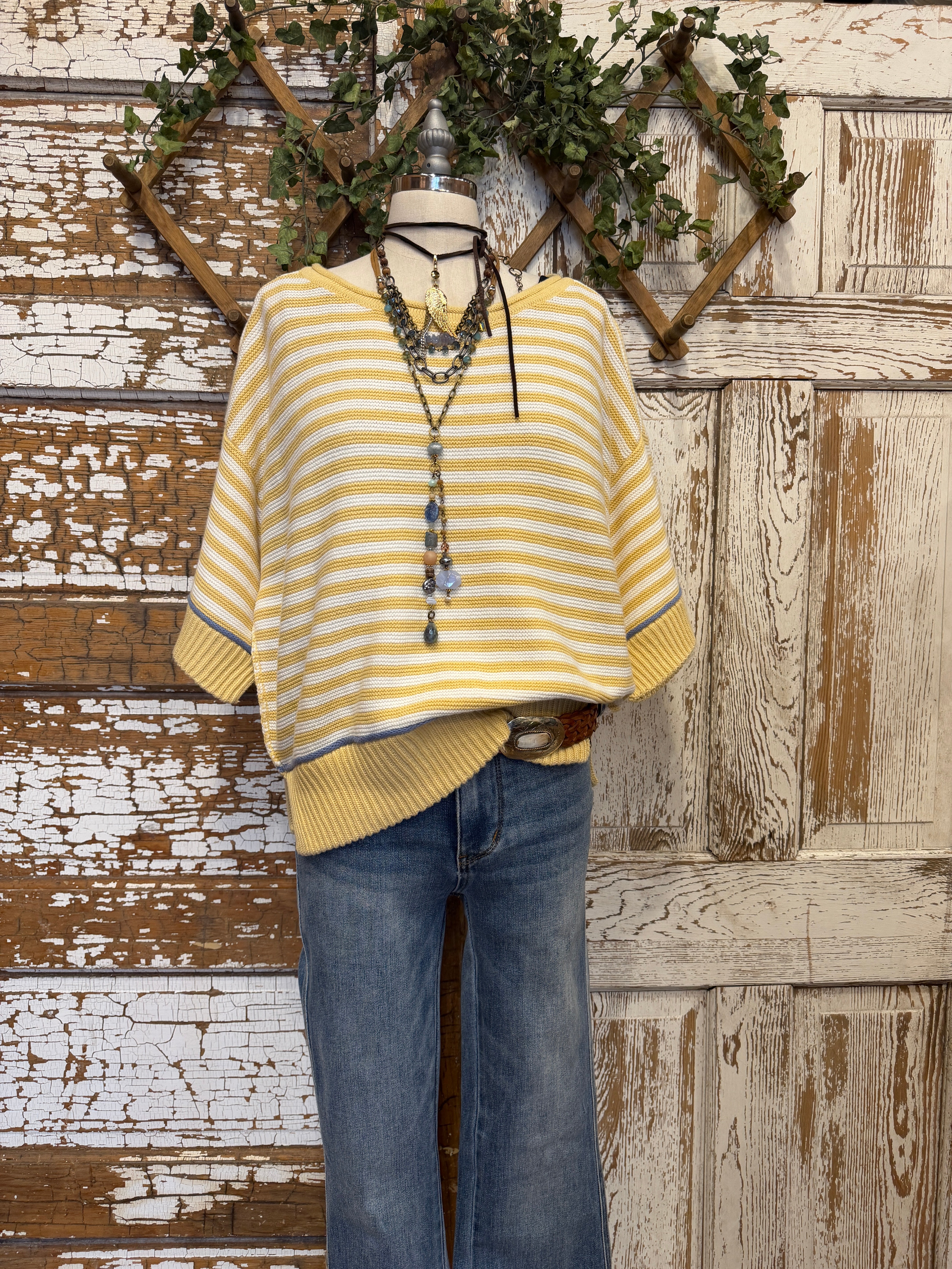 Sunwashed Stripe Short Sleeve Sweater