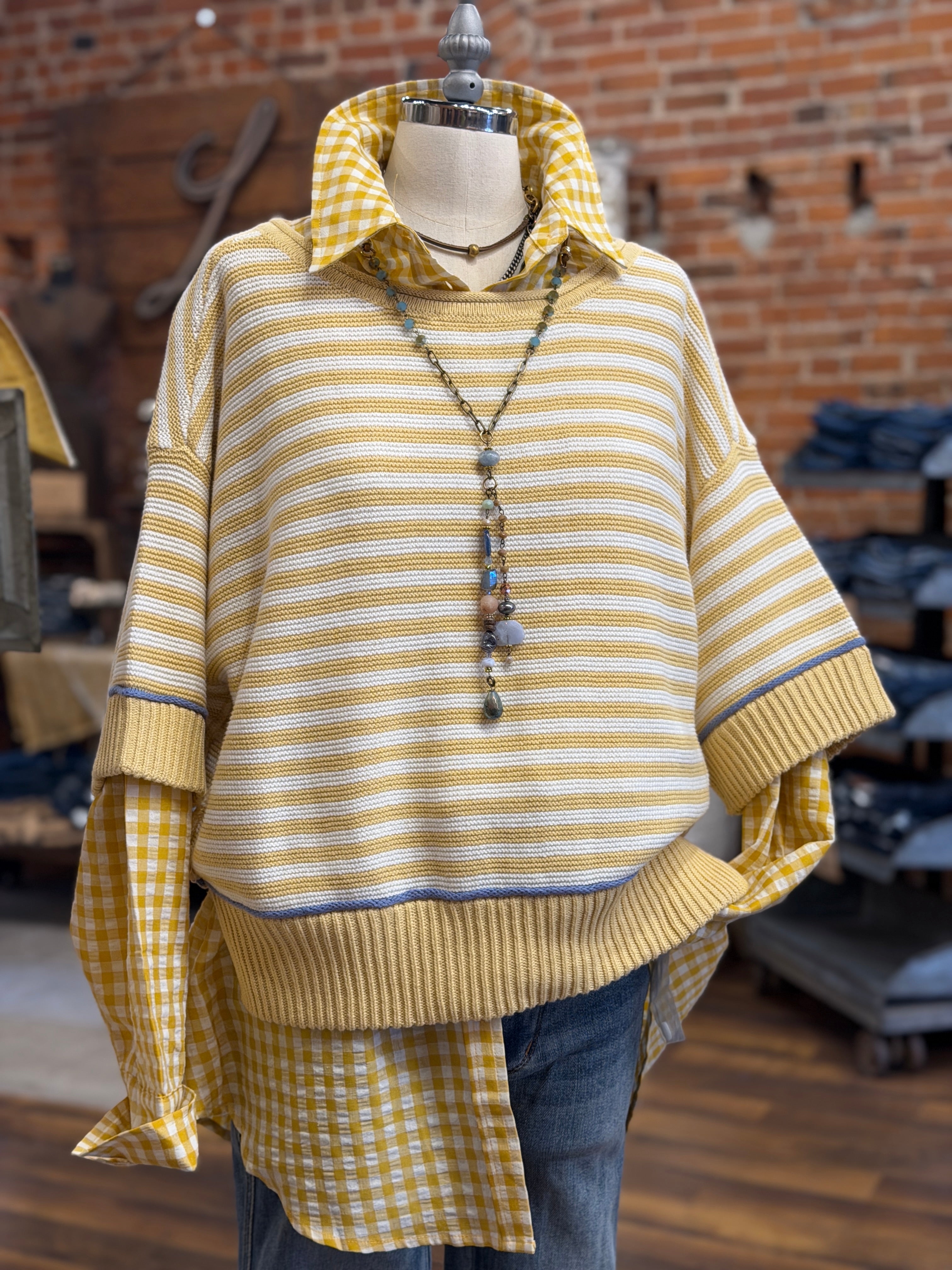 Bright, happy stripes meet cozy comfort in this lightweight sweater that transitions perfectly from season to season.