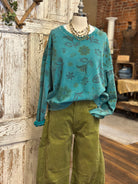 Cozy meets artistic in the Teal Meadow Sweatshirt. This boutique-style pullover features a floral meadow print in muted tones, creating an elevated casual look. Its relaxed fit and soft fabric make it perfect for layering with your favorite jeans, wide-leg pants, or skirts. Comfortable yet stylish, it’s the easy fall go-to that still makes a statement.