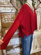 Embrace effortless style and luxurious comfort with our Vibrant Red V-Neck Knit Sweater. This stunning piece is designed to be your go-to for both cozy days at home and chic casual outings. Its rich red hue instantly brightens any wardrobe, making a confident statement wherever you go. The soft, breathable knit ensures you stay comfortable from morning till night, while the relaxed fit offers an elegantly draped silhouette that flatters all body types. Featuring a classic V-neckline, this sweater is perfect for showcasing your favorite layered necklaces or simply wearing on its own for a refined look. The long sleeves provide ample warmth, and the subtly cuffed ends add a touch of polished detail. Pair it with your favorite denim for a casual yet put-together ensemble, or dress it up with tailored trousers for a smart-casual office look. More than just a sweater, it's a versatile wardrobe essential that transitions seamlessly across seasons. Experience the perfect blend of fashion and function, making it an indispensable addition to your collection. Elevate your everyday style with this irresistibly comfortable and vibrantly colored knit.
