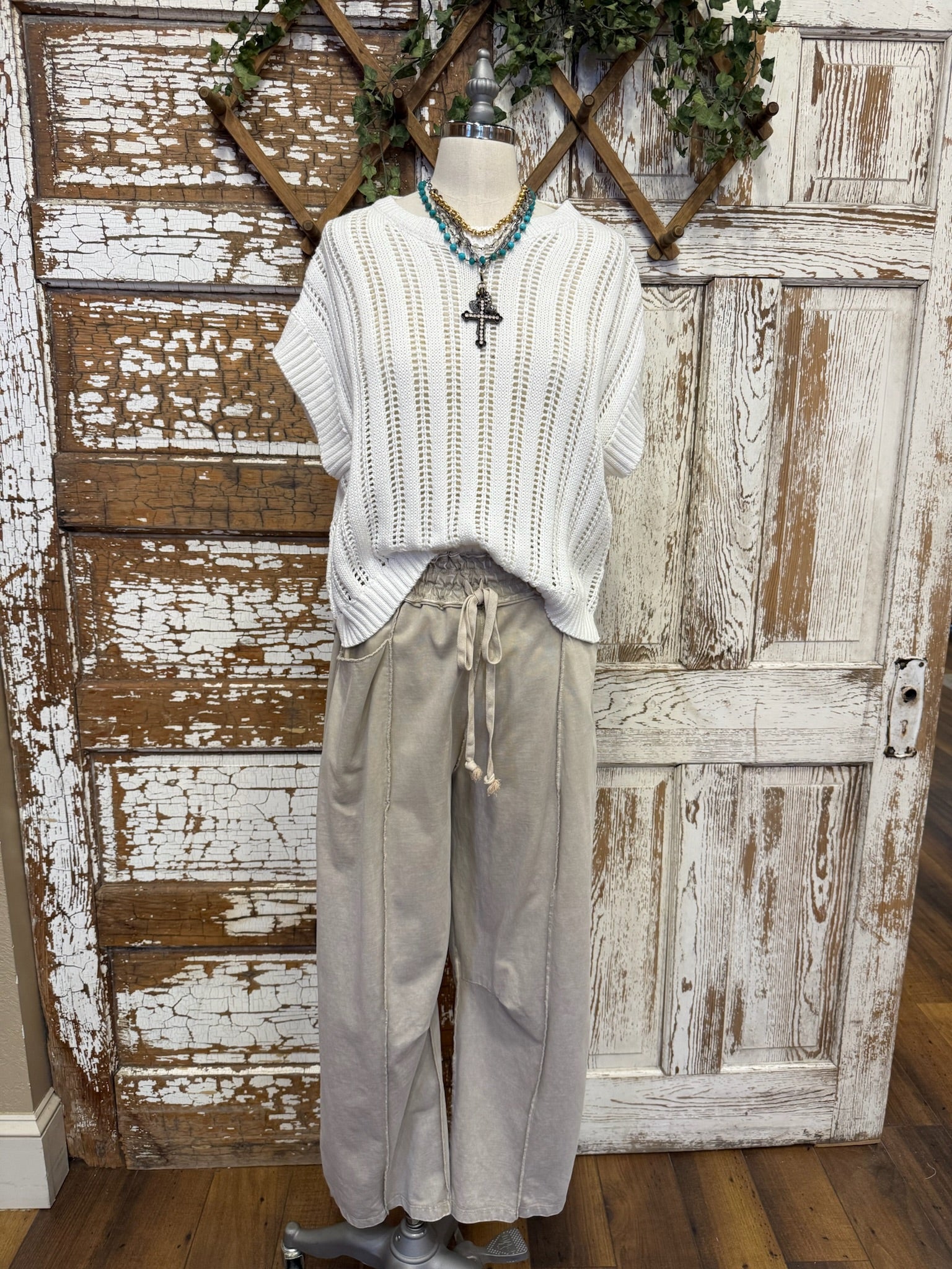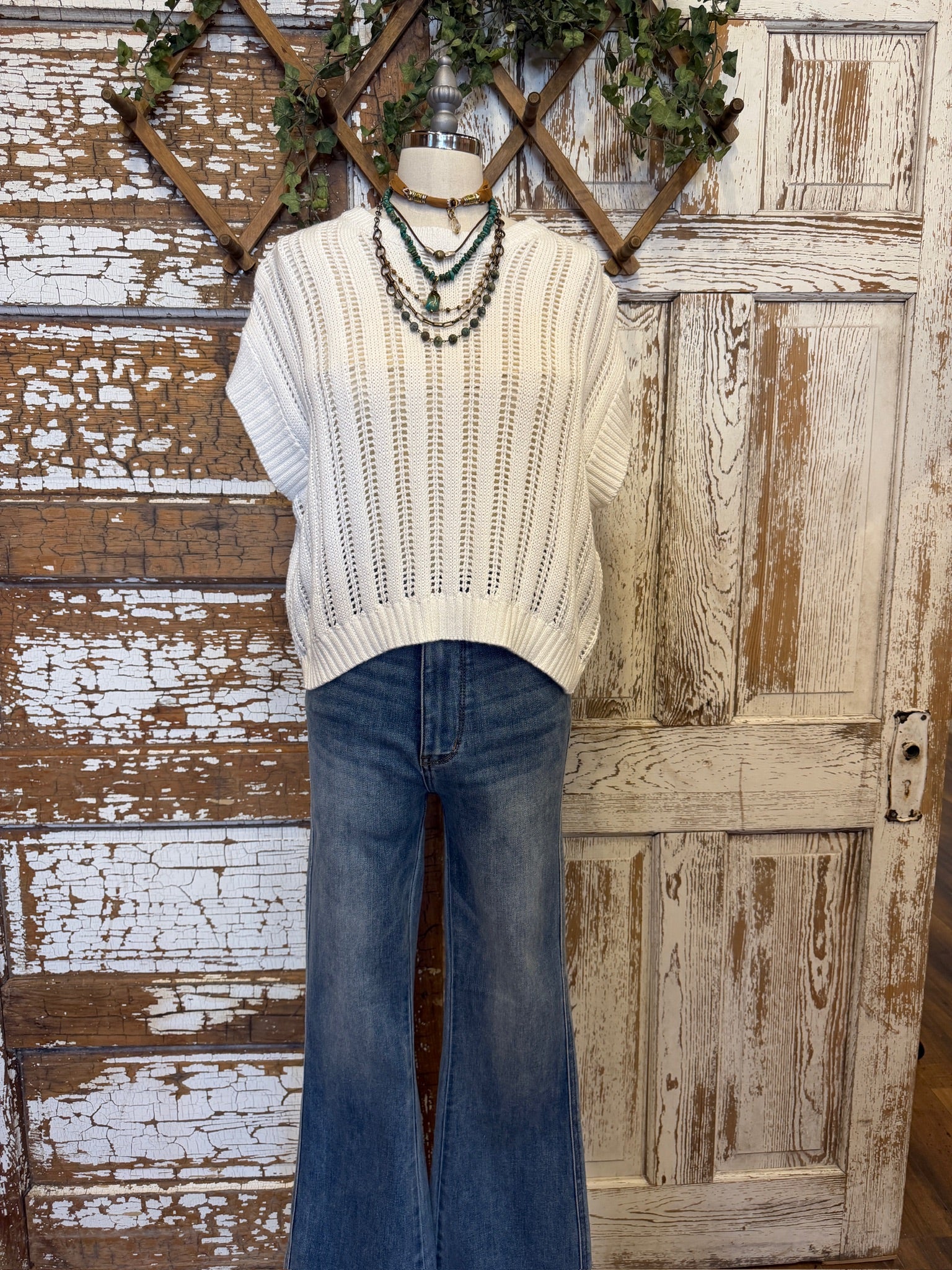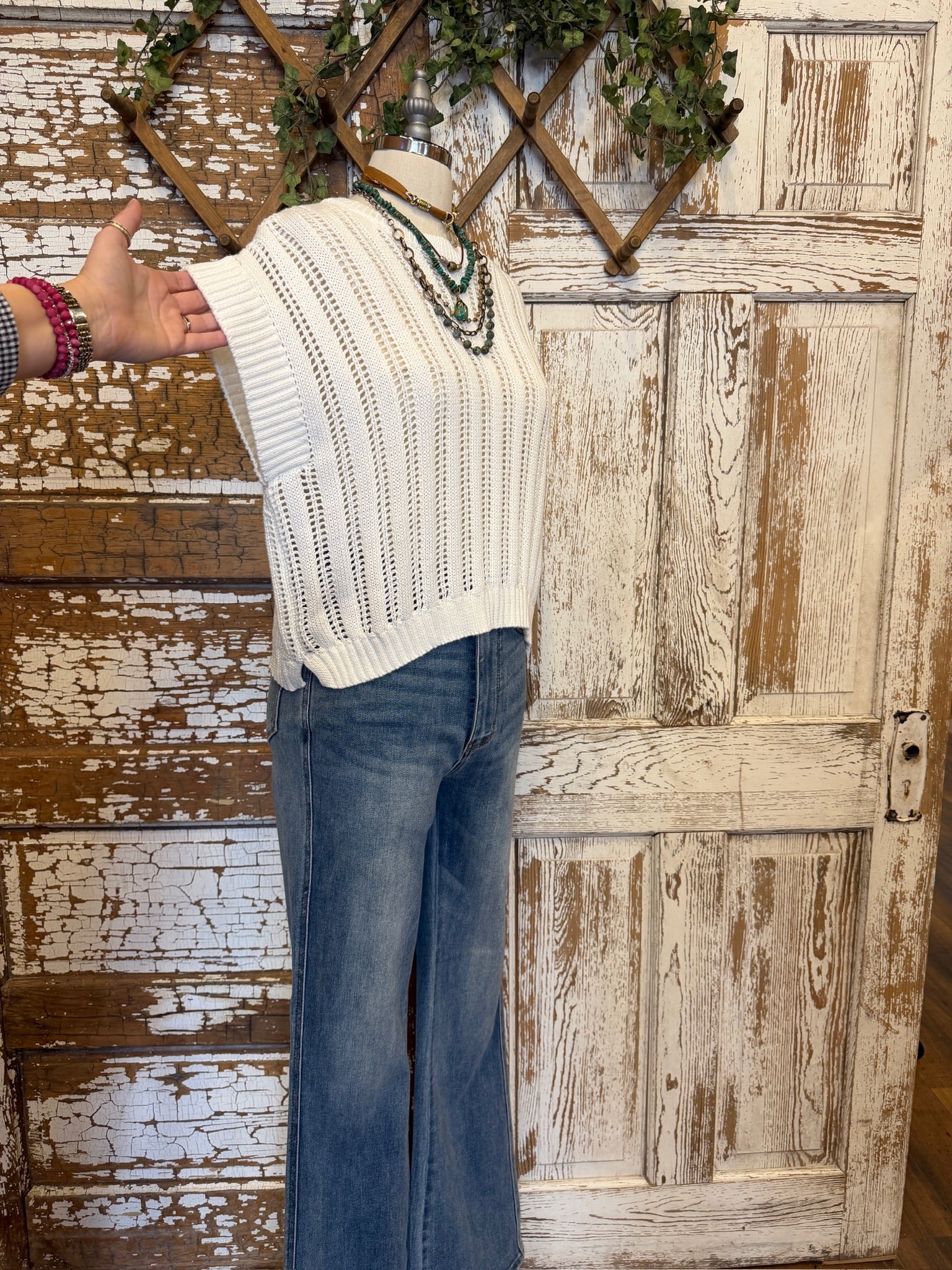White Open Knit Popover Sweater