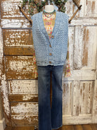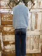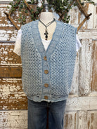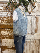 This cozy winter blue sweater vest is a sweet layering piece for every season. The chunky knit texture and wooden buttons give it that perfectly lived-in, boutique feel over your favorite tees and tops.