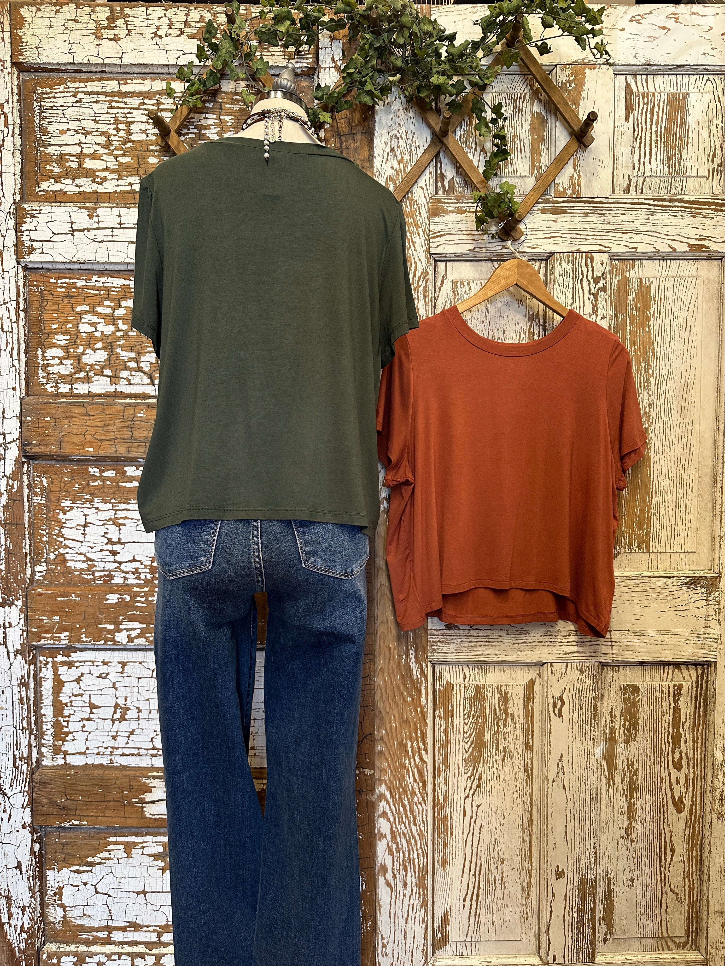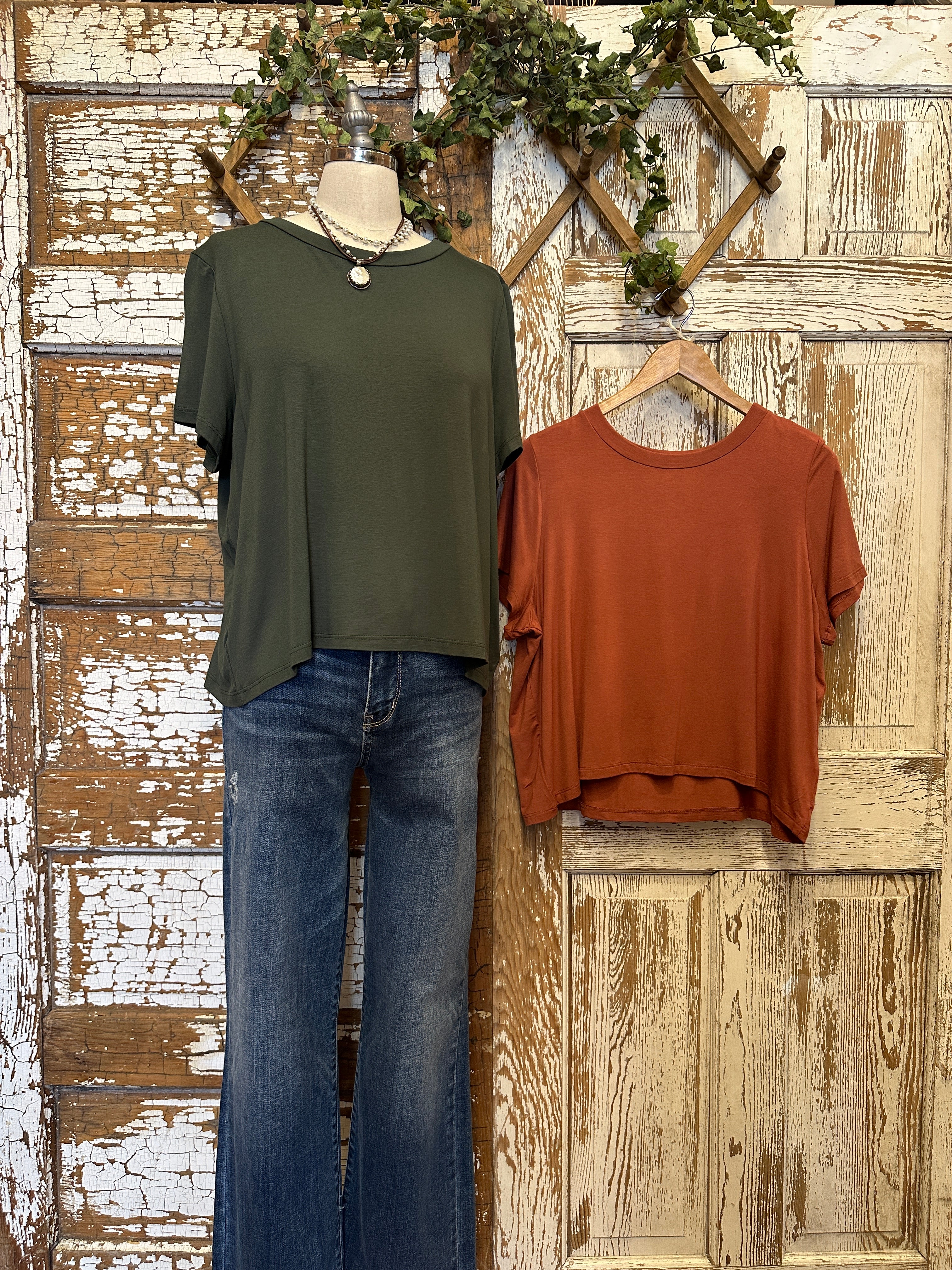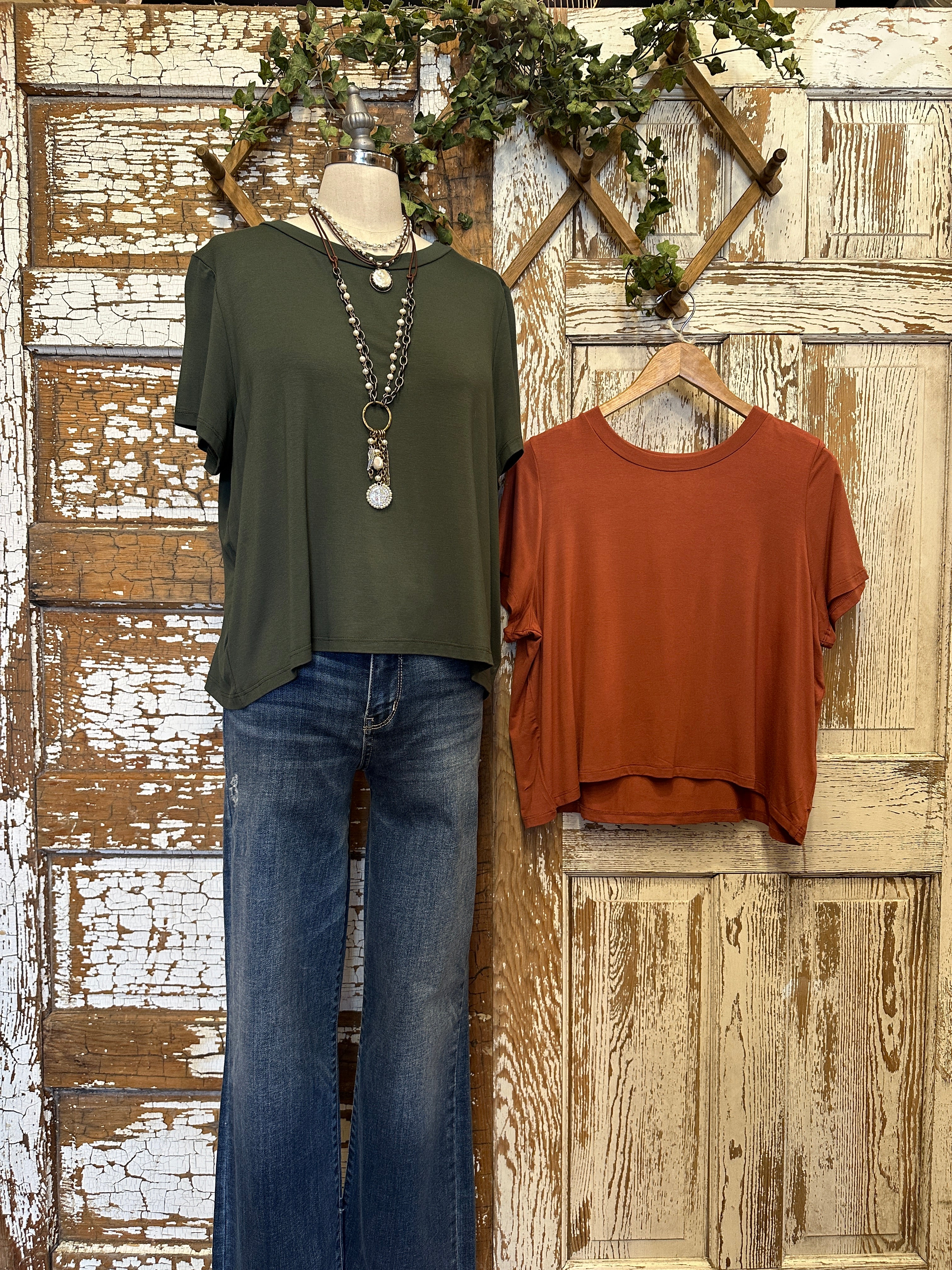 Boutique Wardrobe Essential: Soft bamboo cotton(96% Bamboo Viscose 4% Spandex ) crew neck tee with a modern boxy fit