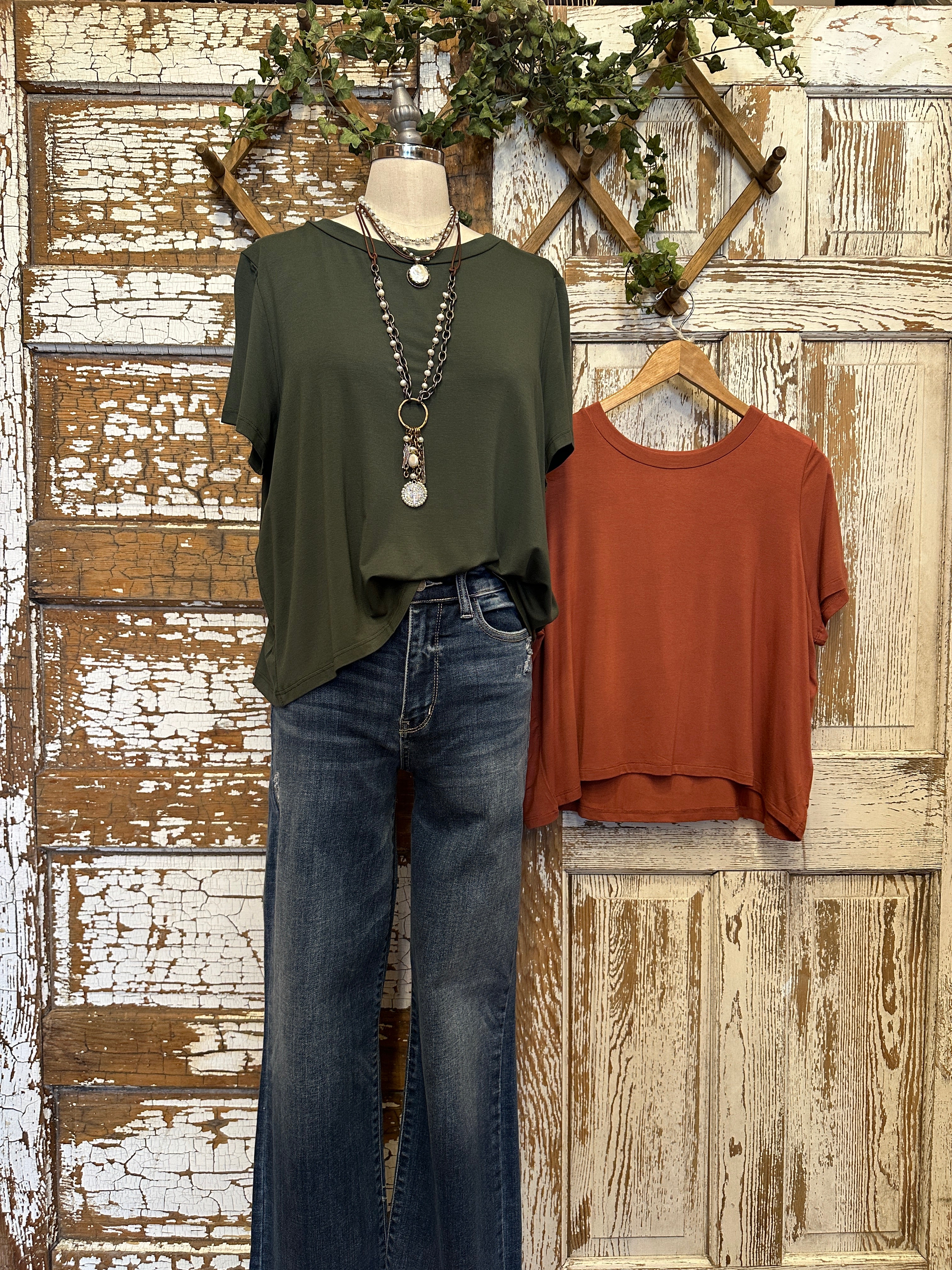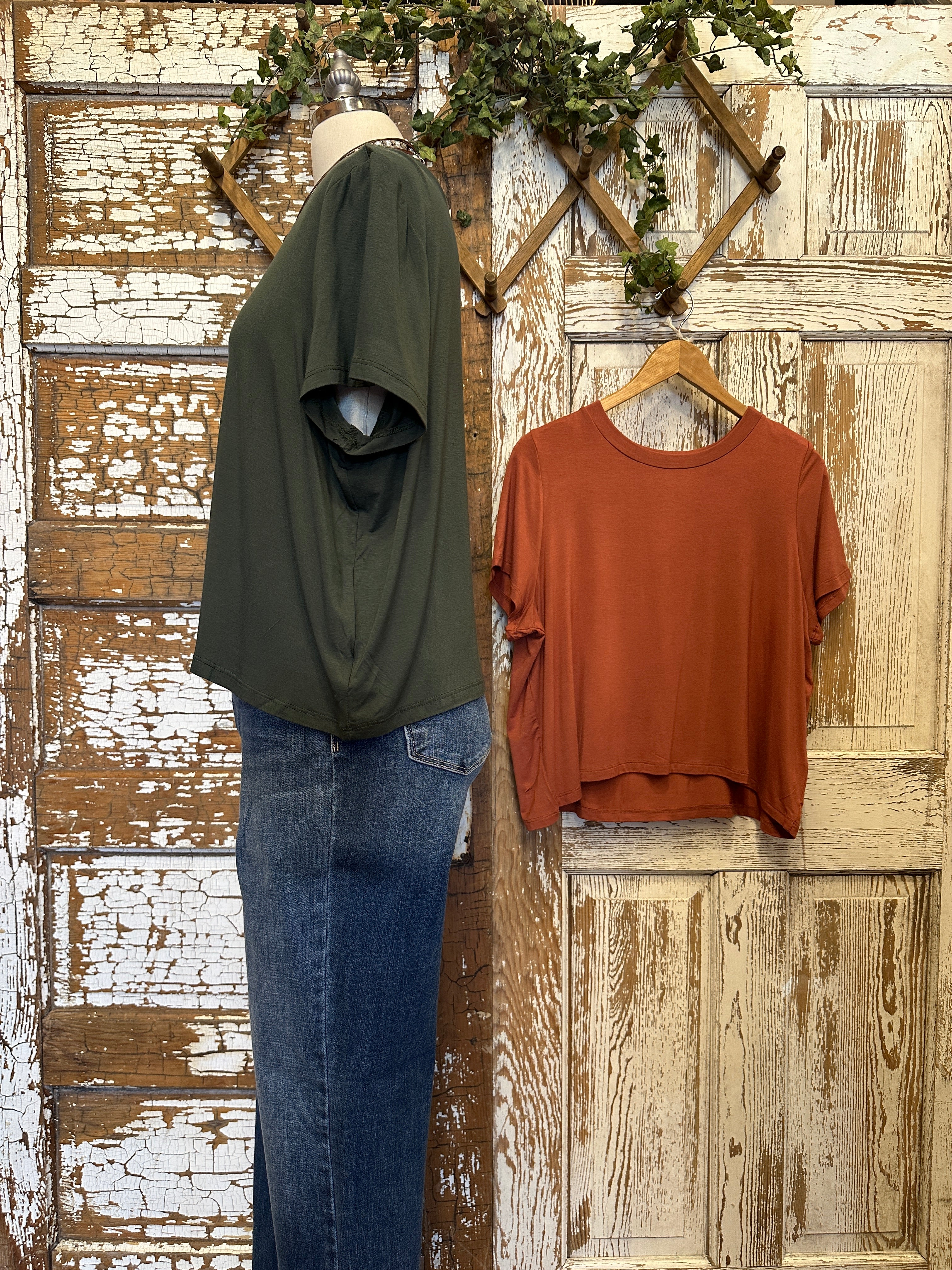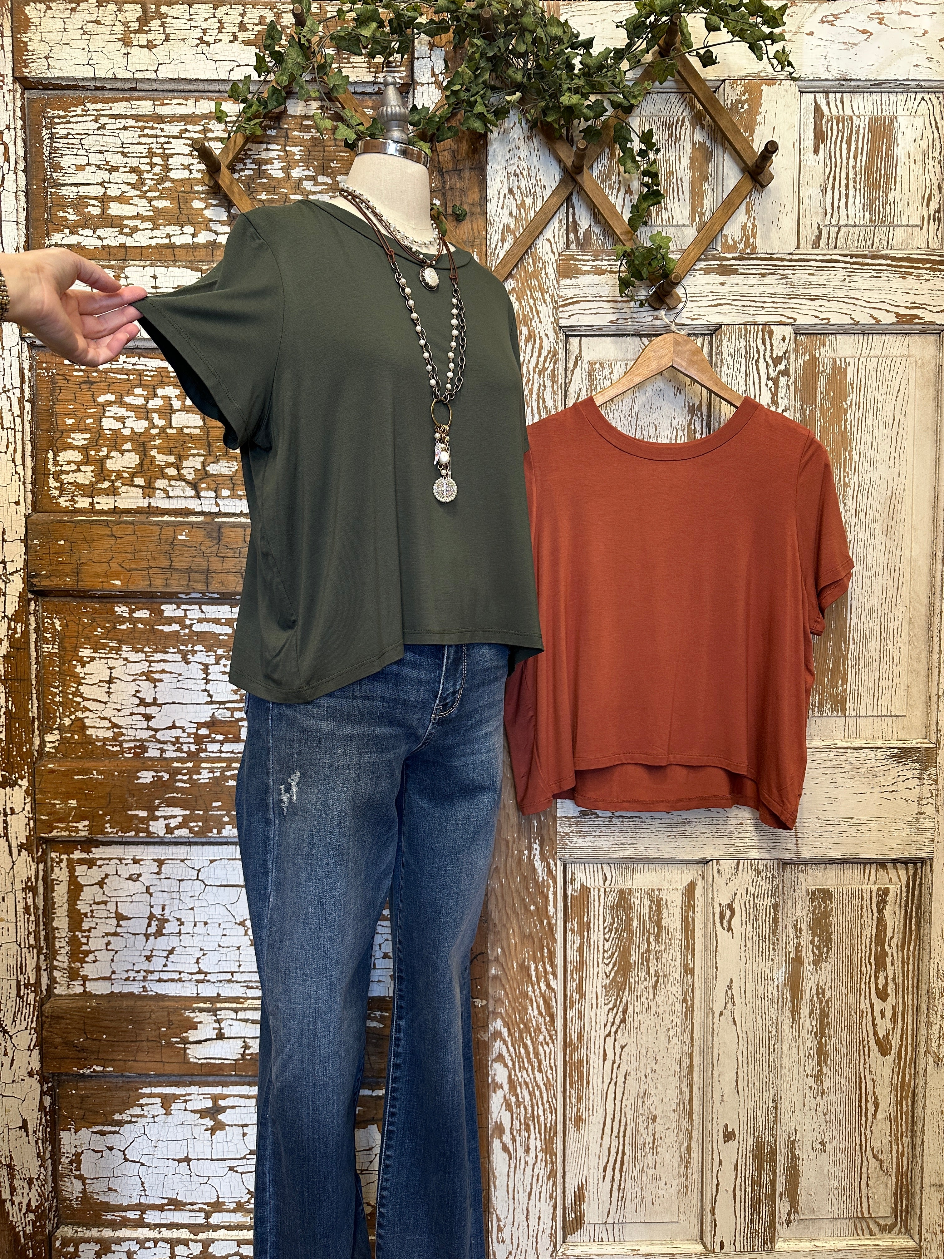 Boutique Wardrobe Essential: Soft bamboo cotton(96% Bamboo Viscose 4% Spandex ) crew neck tee with a modern boxy fit