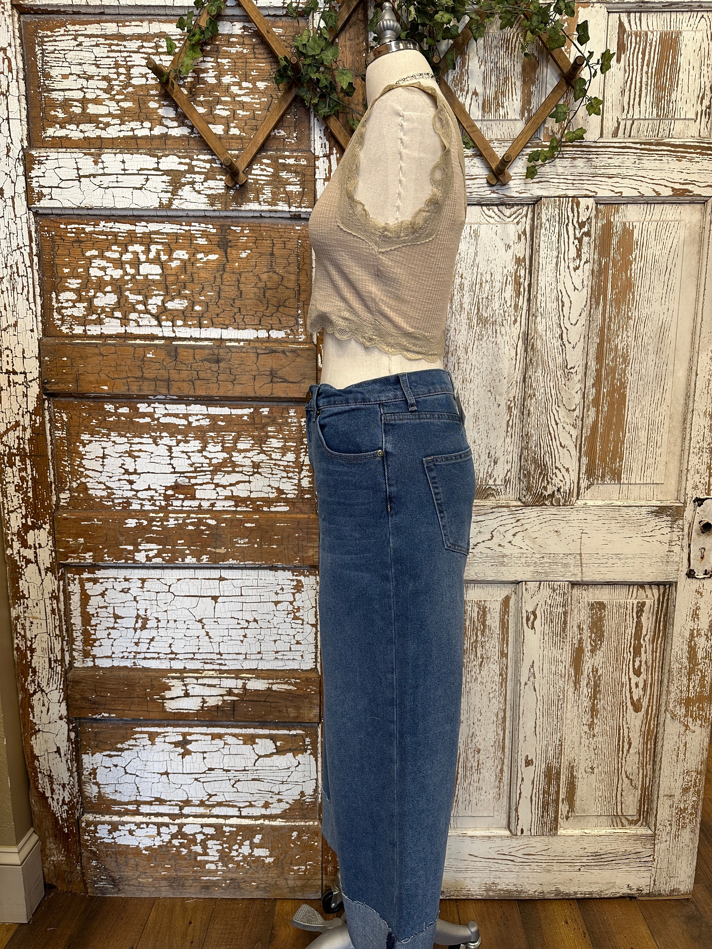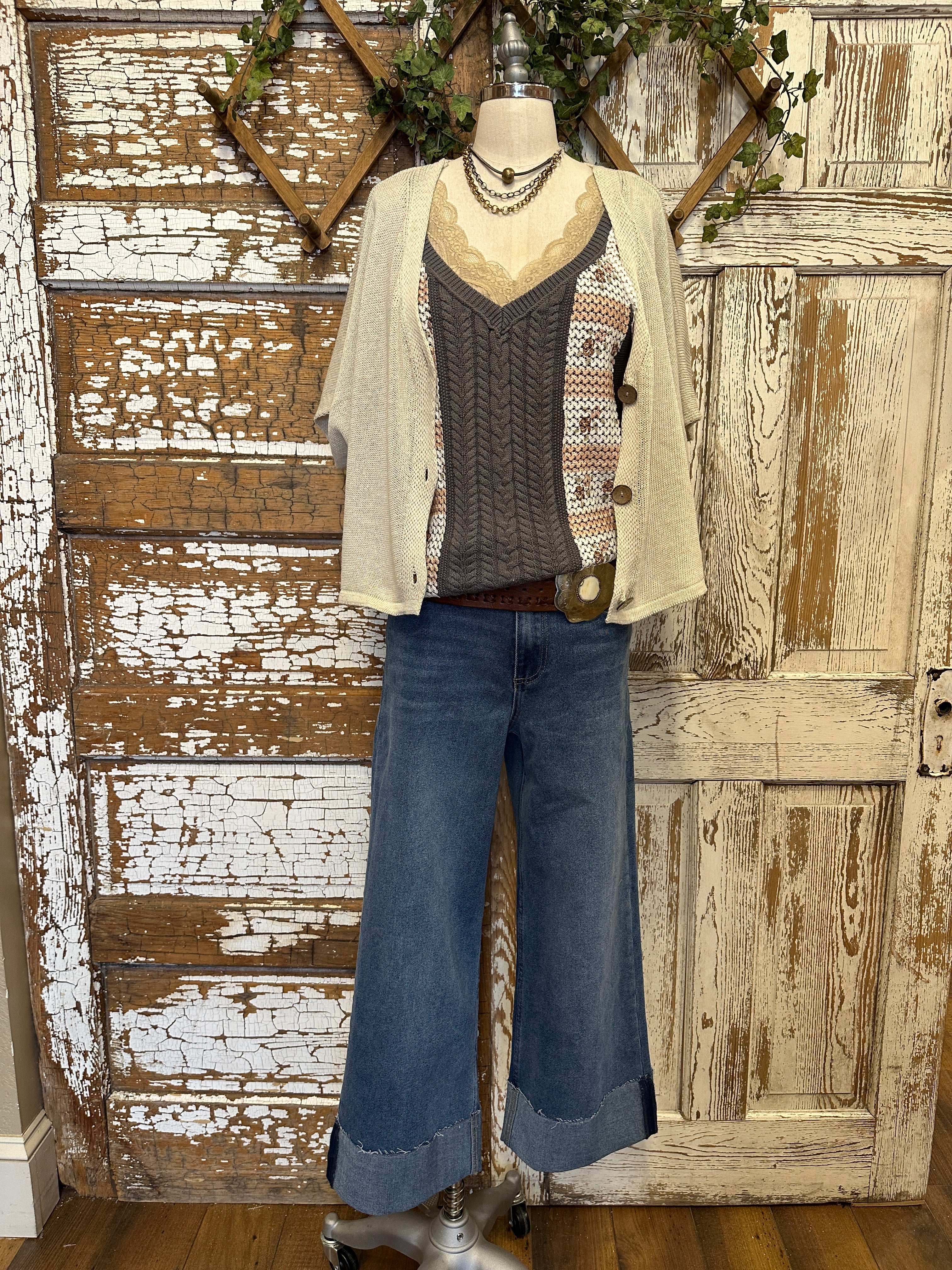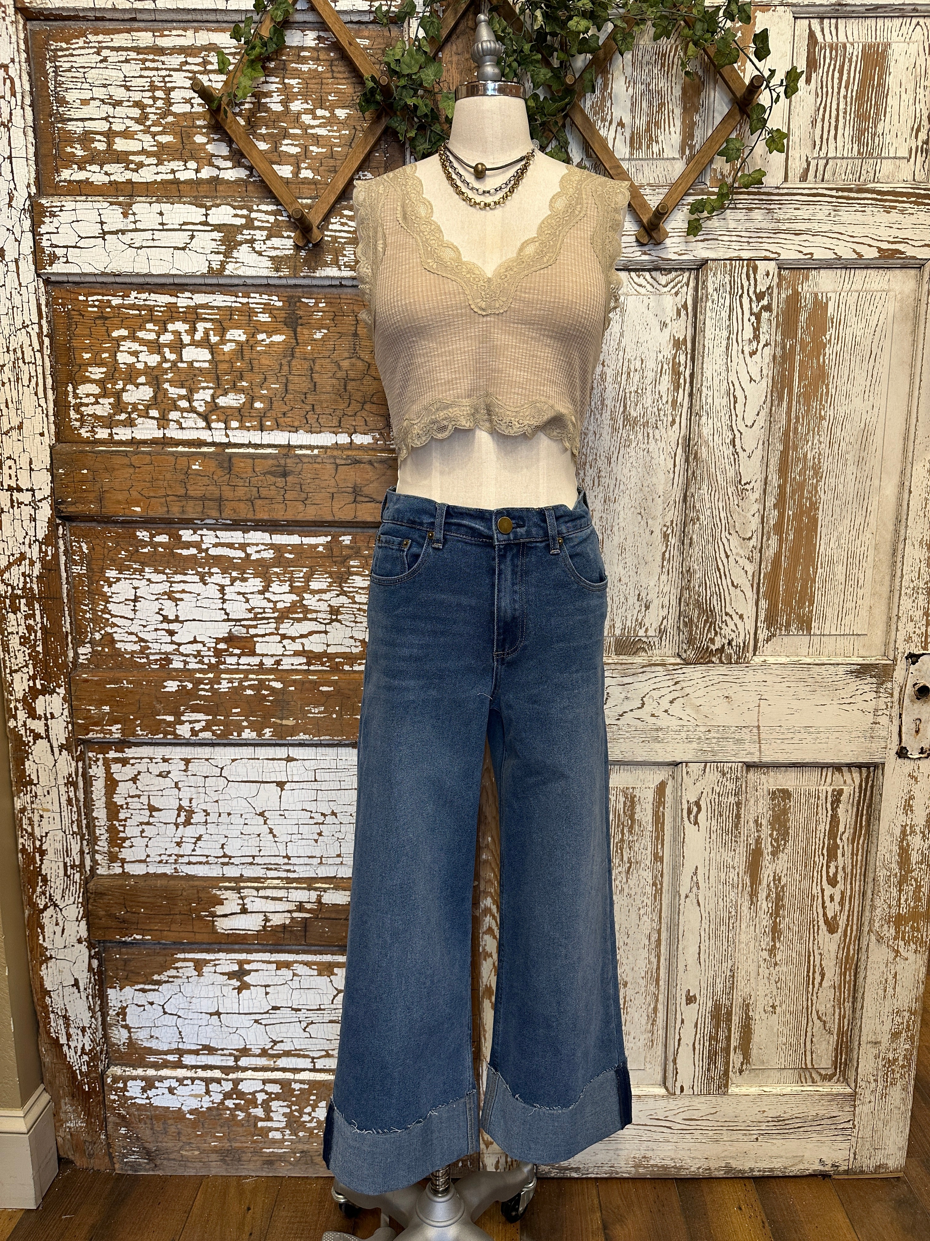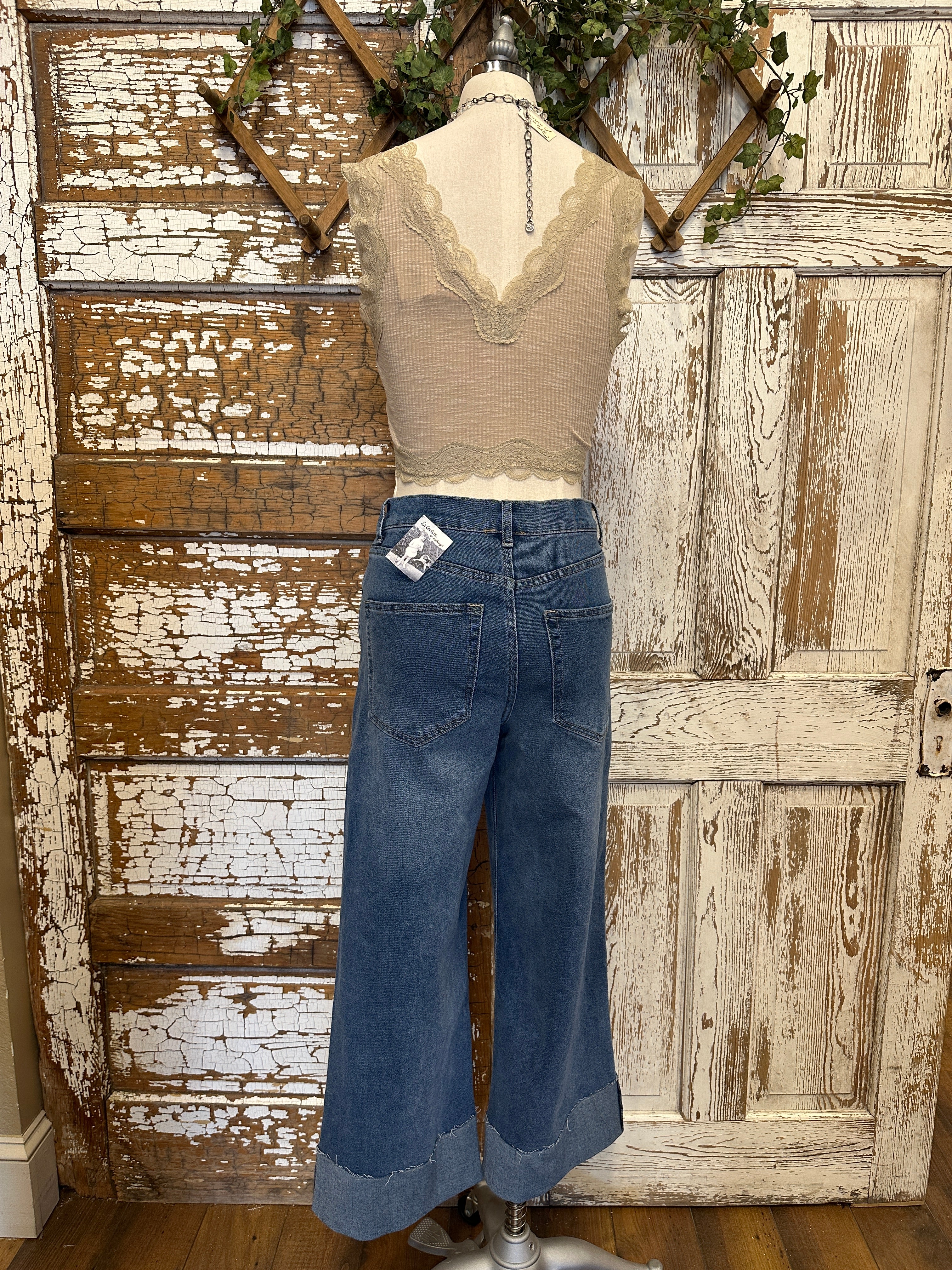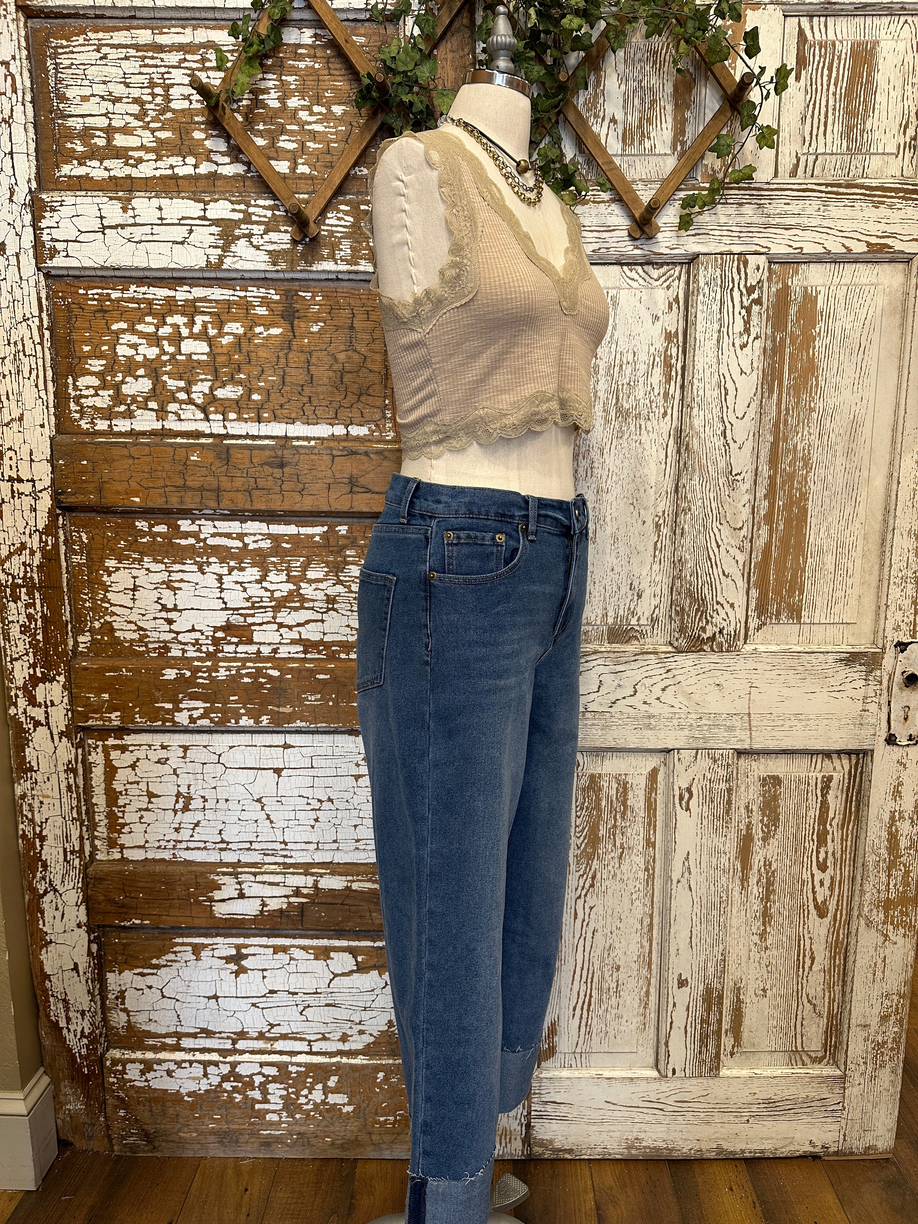 Flaunt your daring side with our Beige Lace Bralette. Featuring a double v-neck design, this bralette adds a touch of allure to any outfit. Don't just take our word for it, let our lace details and ribbed bodice speak for itself.