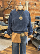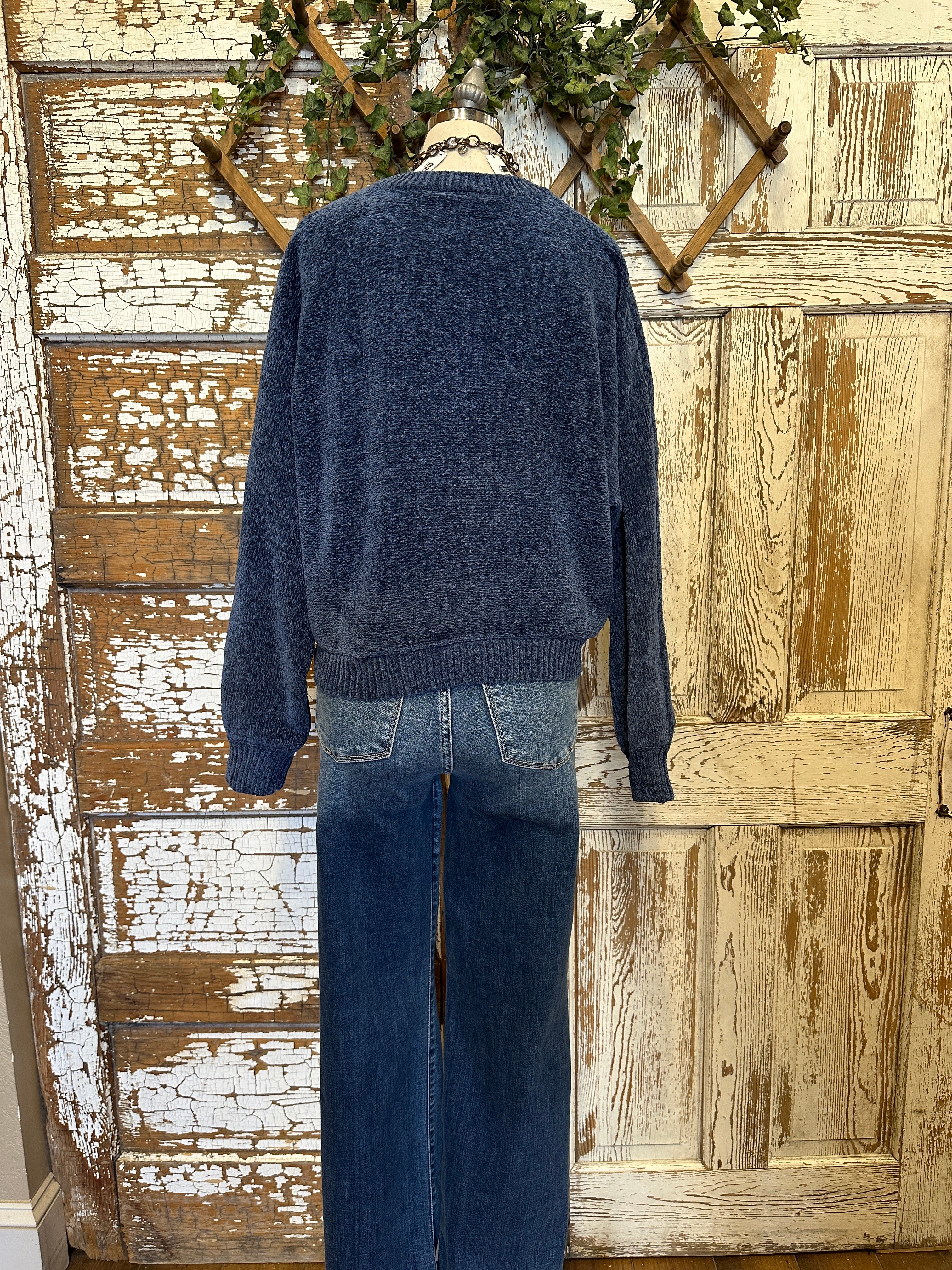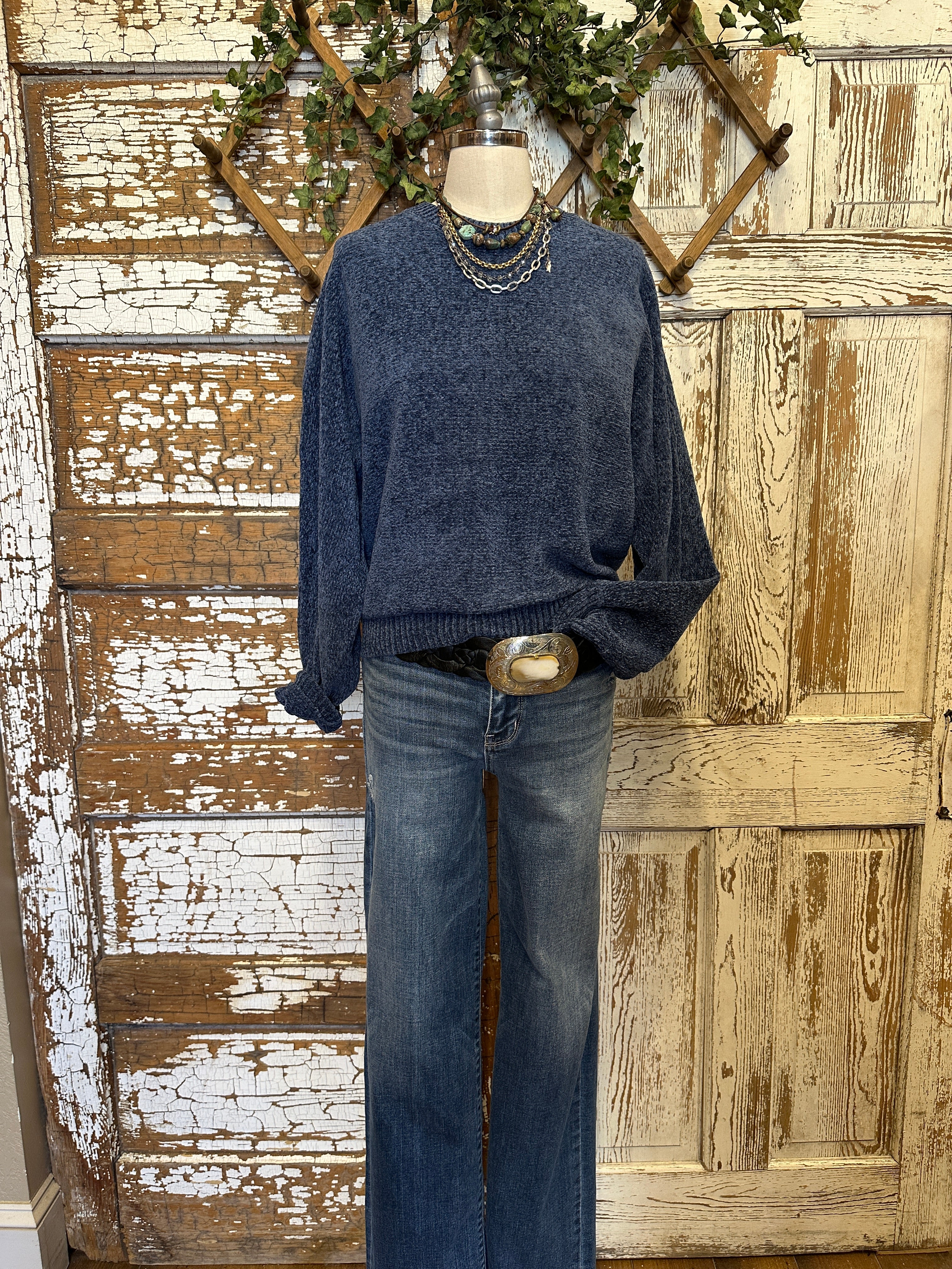 Snuggle-soft and oh-so-chic, this chenille sweater is made for cozy days and stylish nights. Its dusty blue tone adds sophistication while keeping the boutique comfort you love.