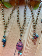 This handmade artisan necklace from Artistic Works by Lu combines classic structure with modern artistry. Measuring approximately 19 ½ inches, this piece features a beautiful contrast of textured circular links and elongated chain segments. The antique brass finish adds warmth and depth, giving it a timeless boutique feel that pairs effortlessly with any wardrobe.