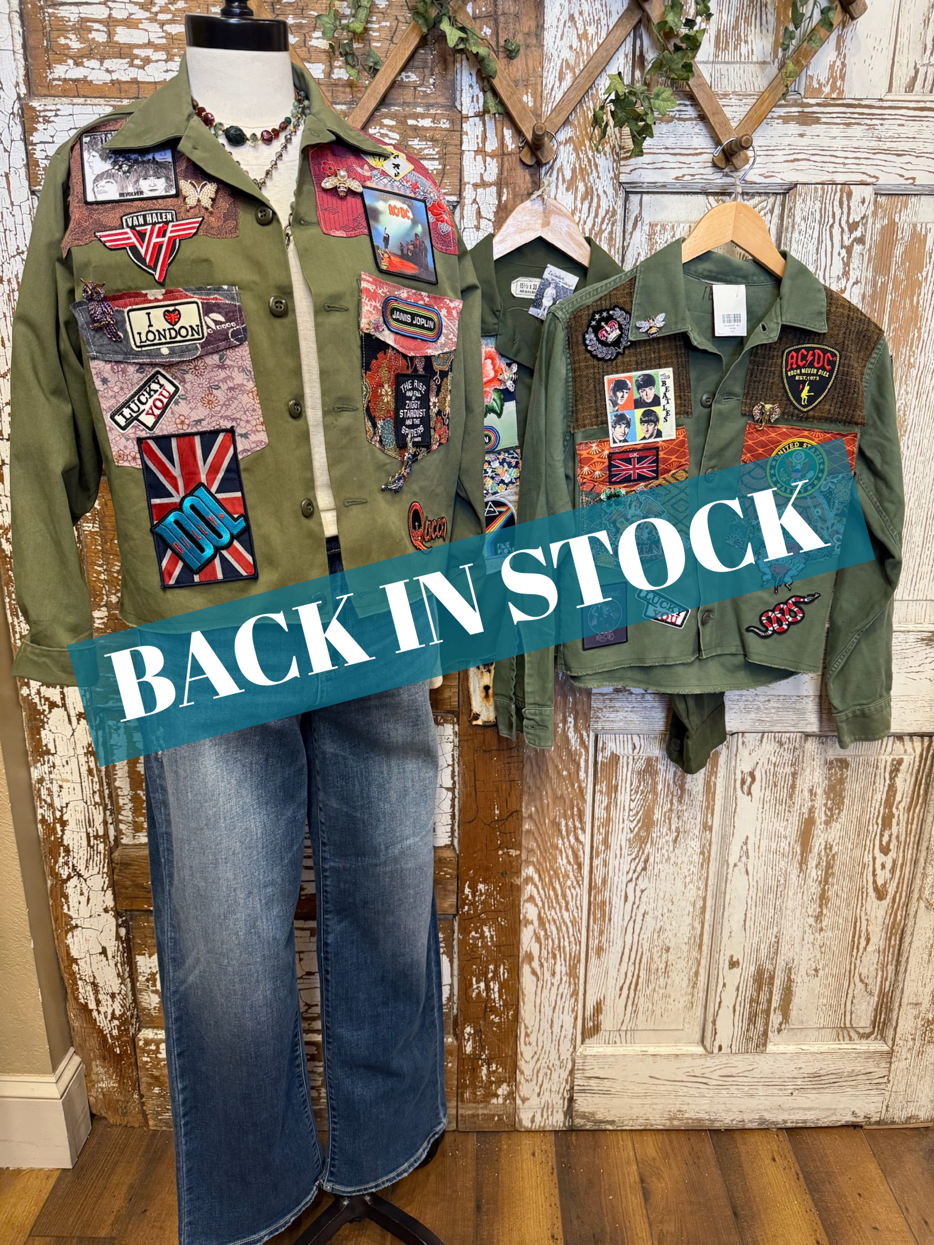 Designed by Robbie Wargo, a veteran fashion designer with over 40 years of experience working in New York, Los Angeles, San Francisco, and Philadelphia, each vest reflects his passion for hand embellishments, hand sewing, and repurposing vintage fabrics. His brand, Vintage Rock Los Angeles, blends classic army wear with rock-inspired vintage patches for an edgy, timeless vibe.