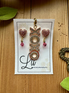 Matching heart earrings with pink crystal drops